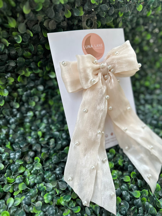 Cream Pearls Coquette Hair Bow