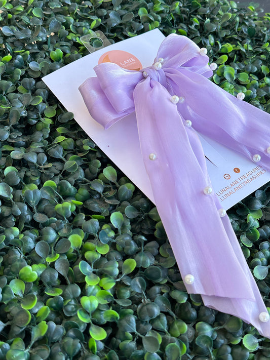 Lavender Pearls Coquette Hair Bow