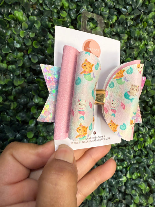 Mermaid Kitty Hair Bow Handmade Pastel Glitter Bow for Girls