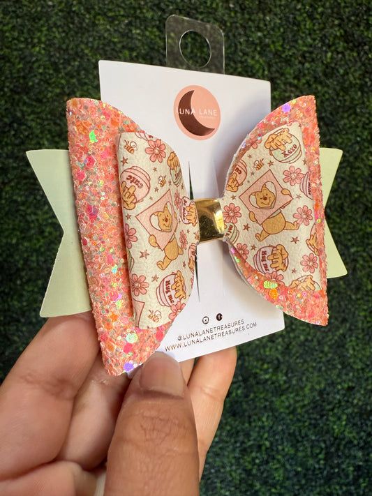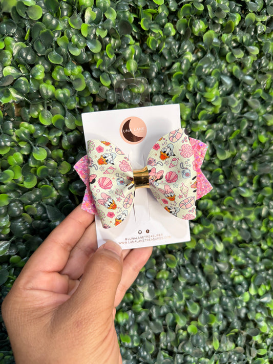Daisy Duck Inspired Bow Handmade Pink Glitter Hair Clip for Girls