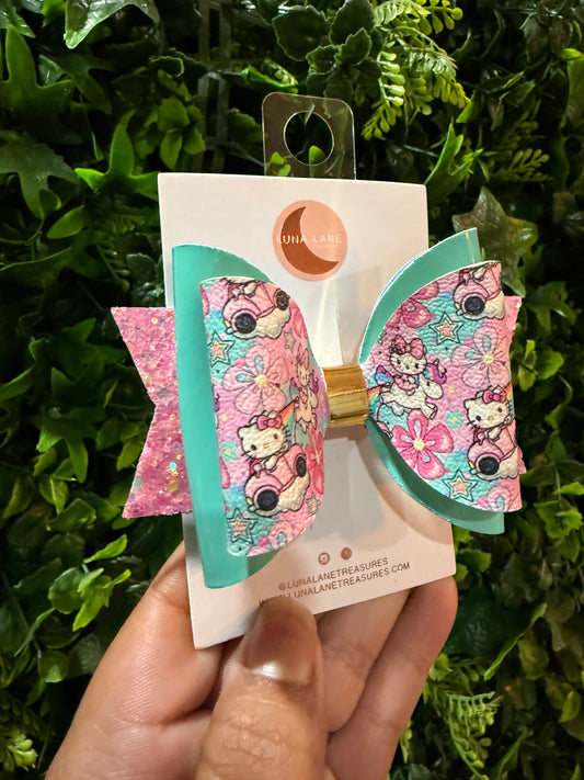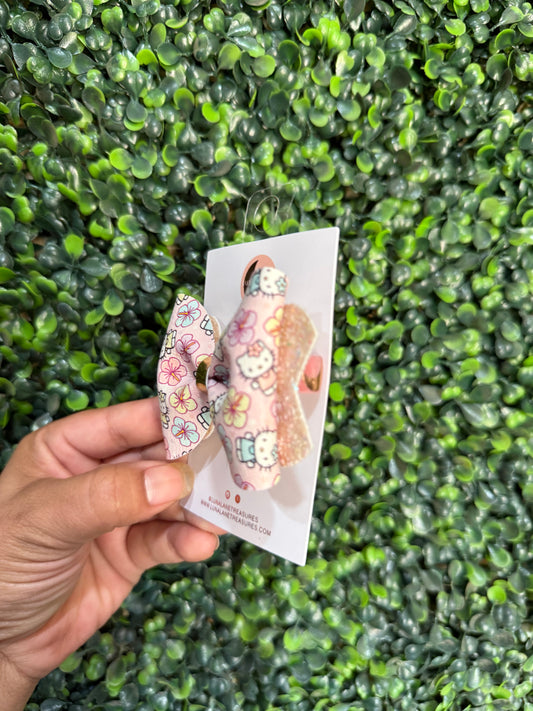 Hello Kitty Floral Bow – Handmade Pink Hair Clip with Glitter Backing