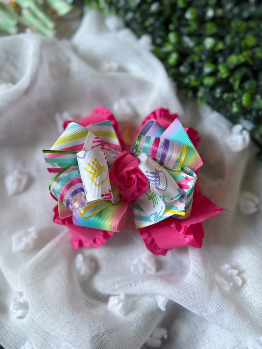 Tie-dye Purple and Pink Ruffle Hair Bow