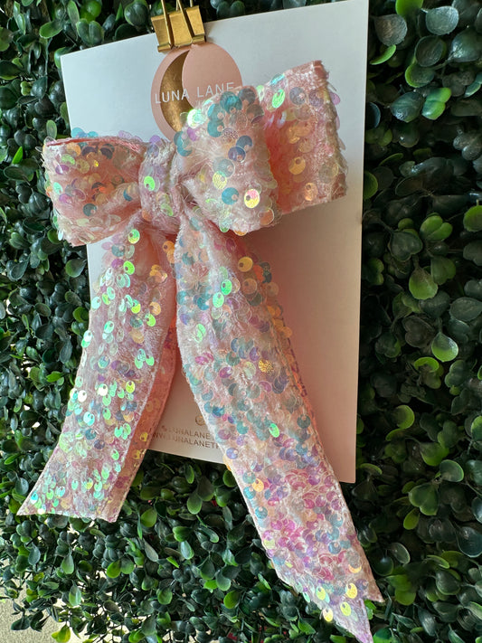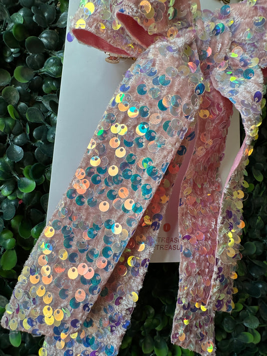Light Pink sequins Coquette Hair Bow