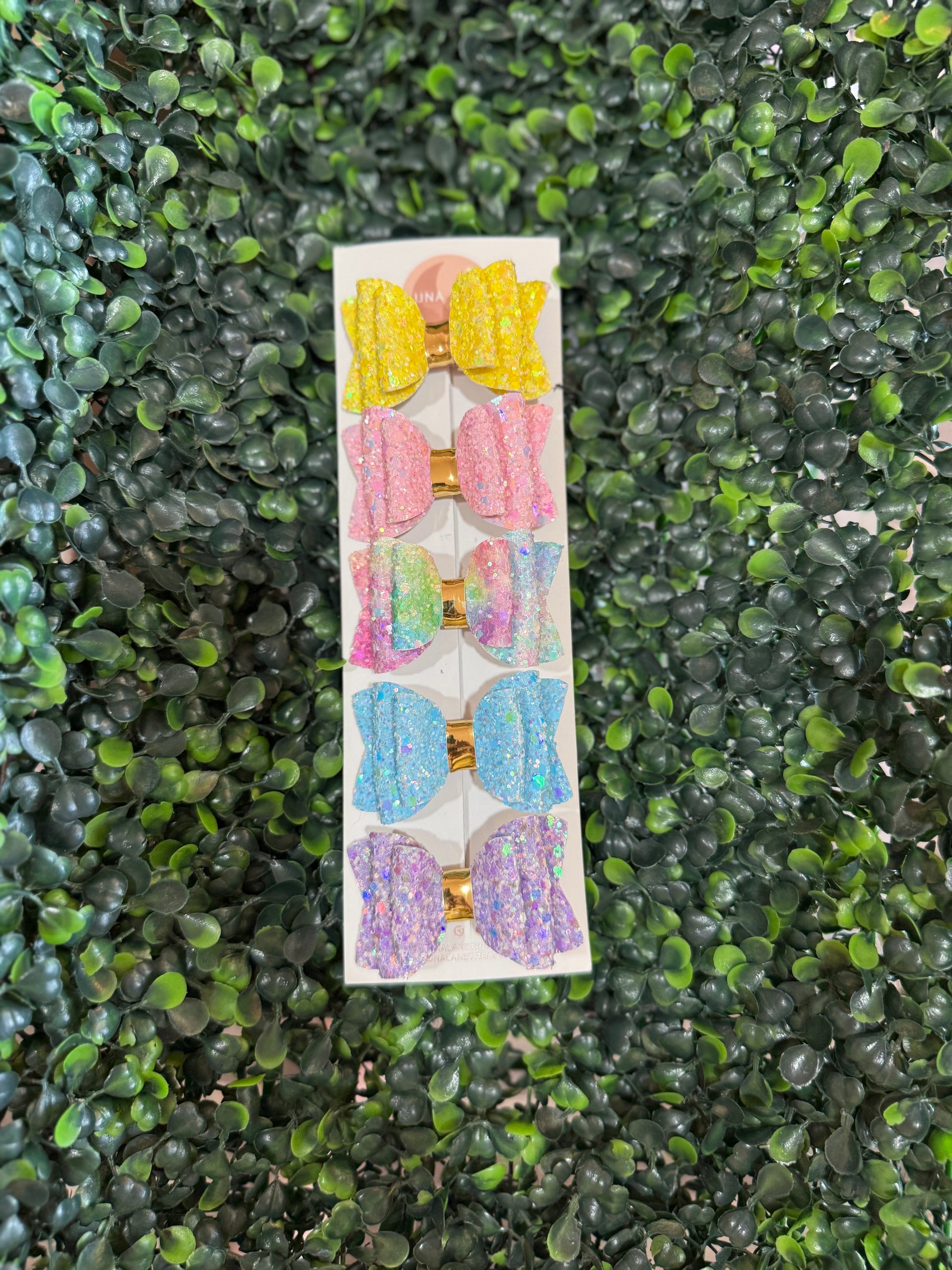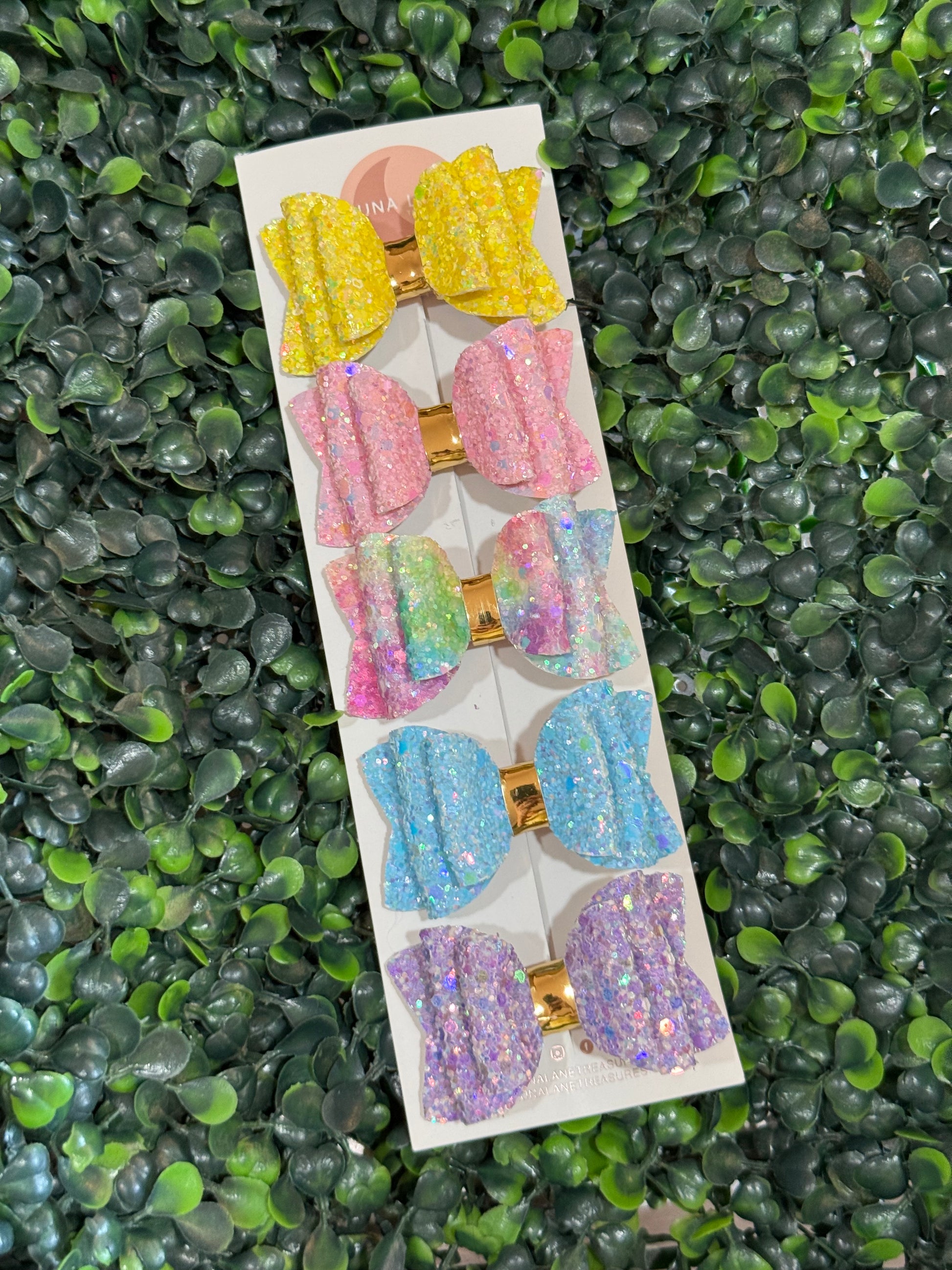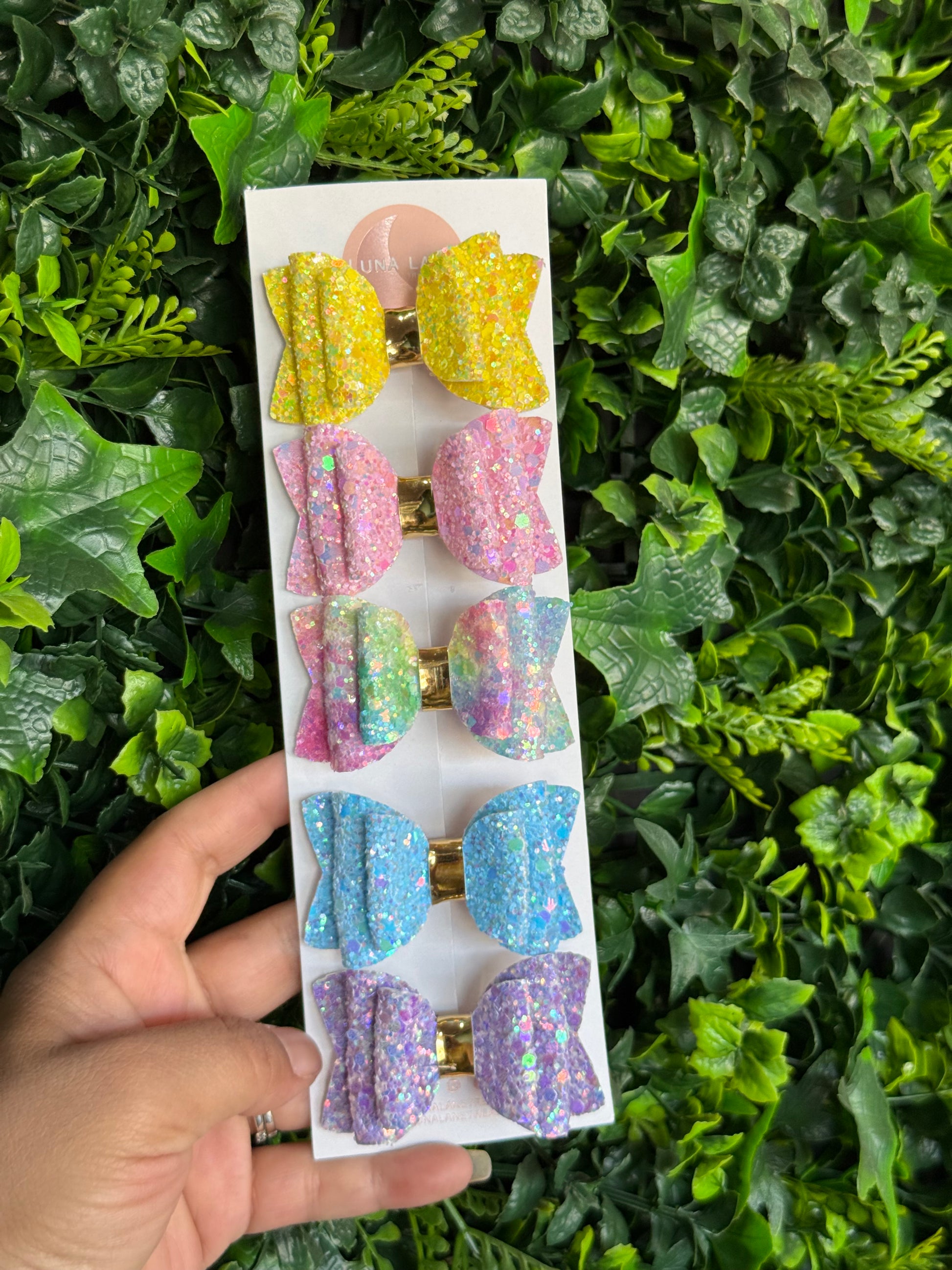 - Set of 5 handcrafted glitter hair bows