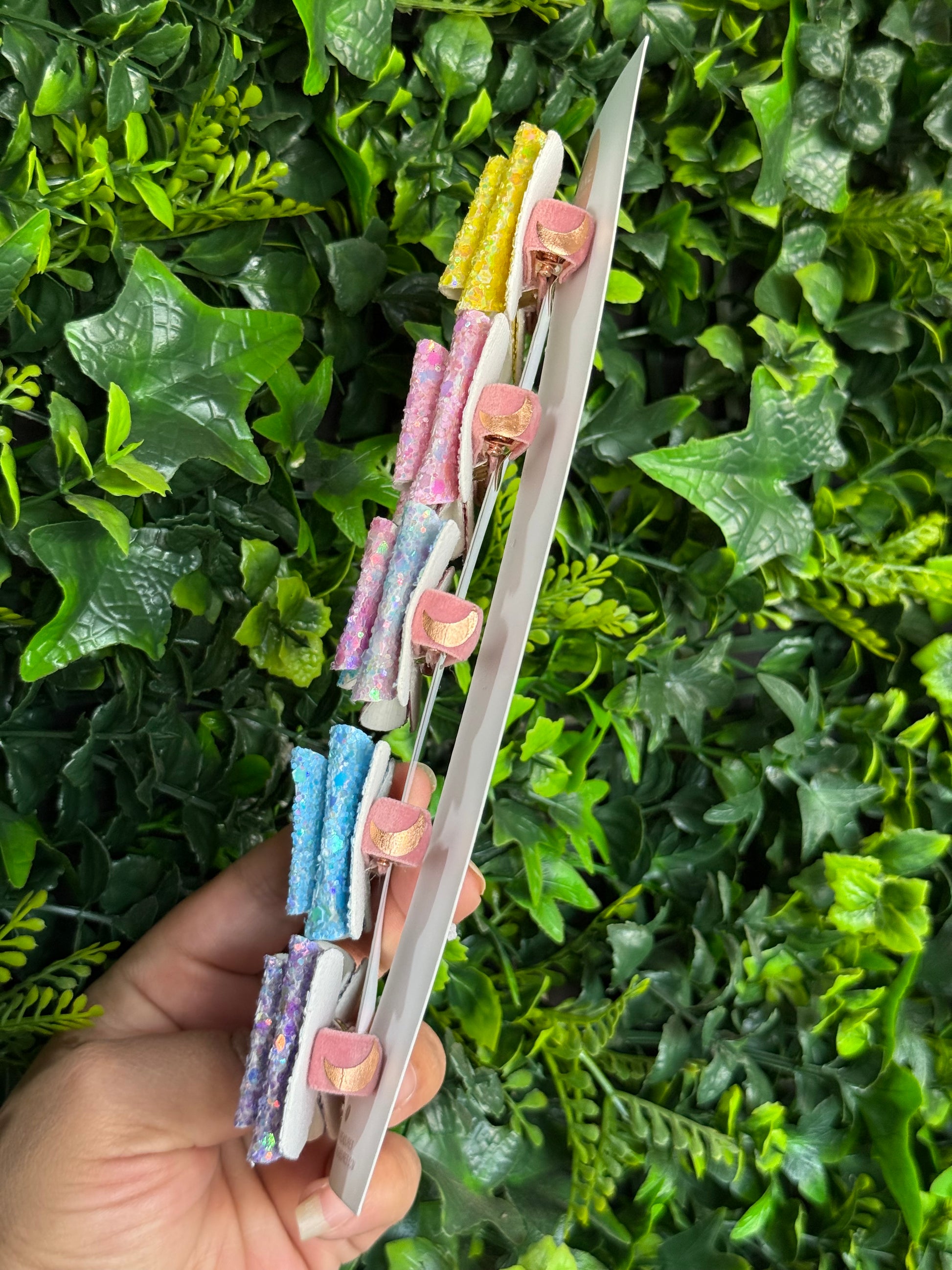 Add a pop of color and a touch of magic to any hairstyle with our handmade glitter hair bows! This enchanting 6-piece set features a beautiful rainbow of sparkling bows, perfect for girls who love a little glam. From sunny yellow to shimmering lilac, each bow is crafted with love, premium glitter fabric, and a sturdy gold clip that holds hair securely in place without tugging.