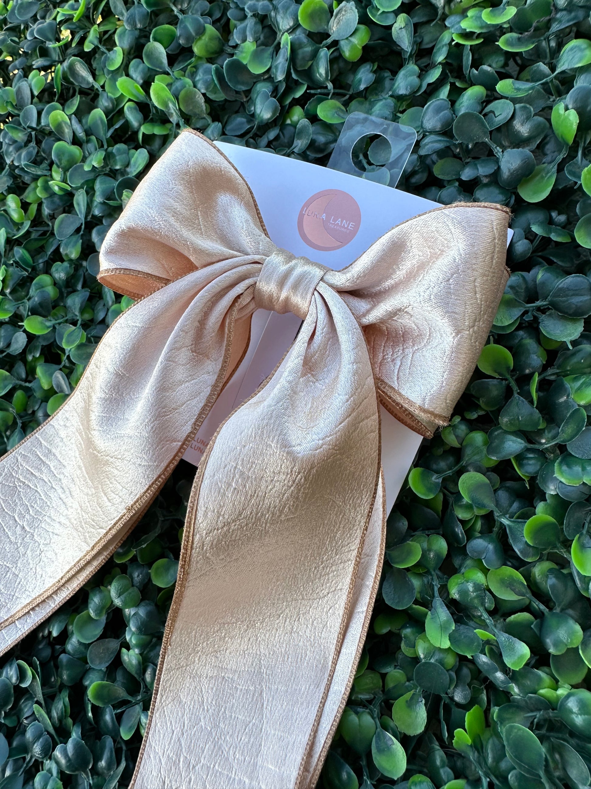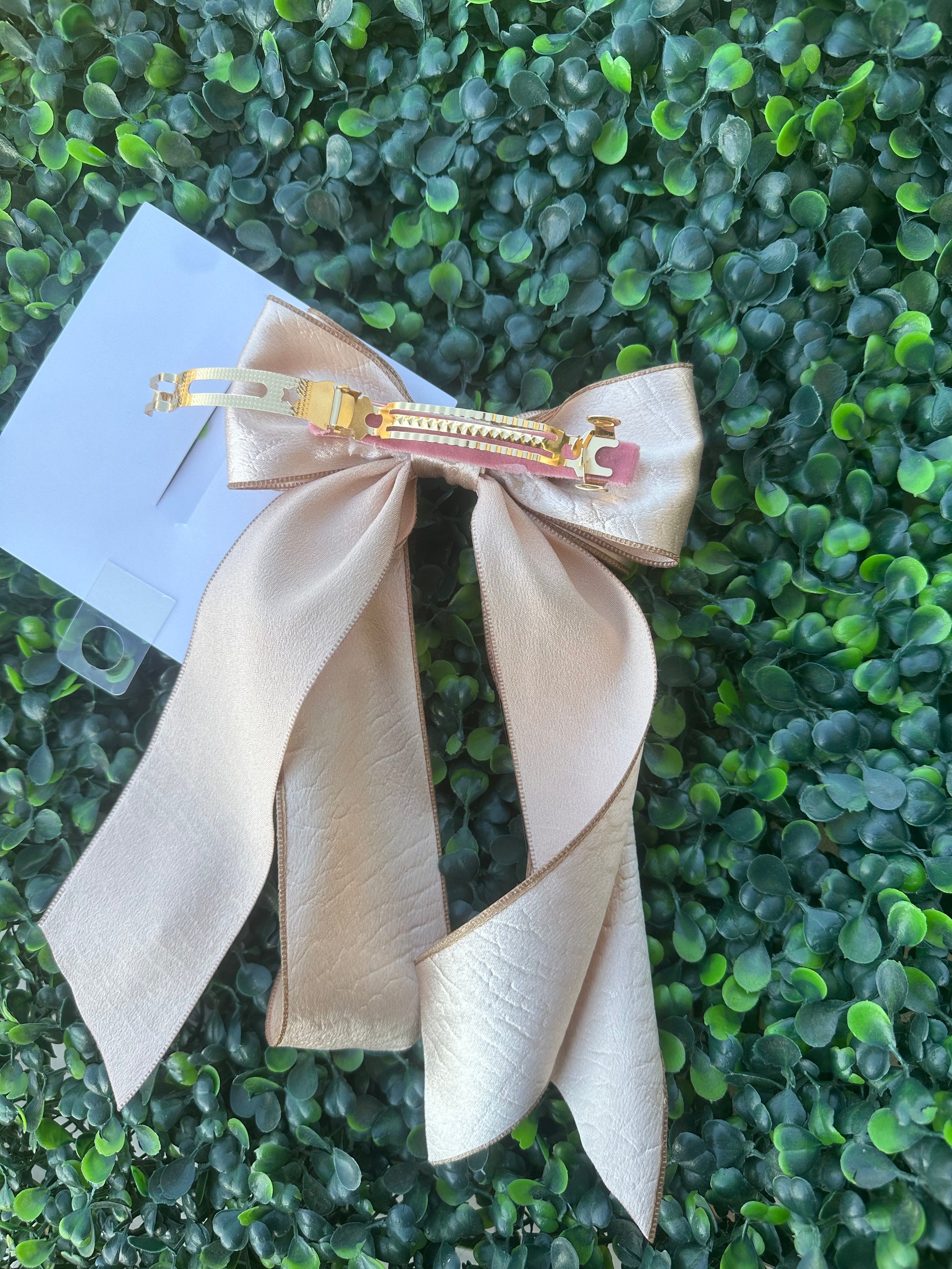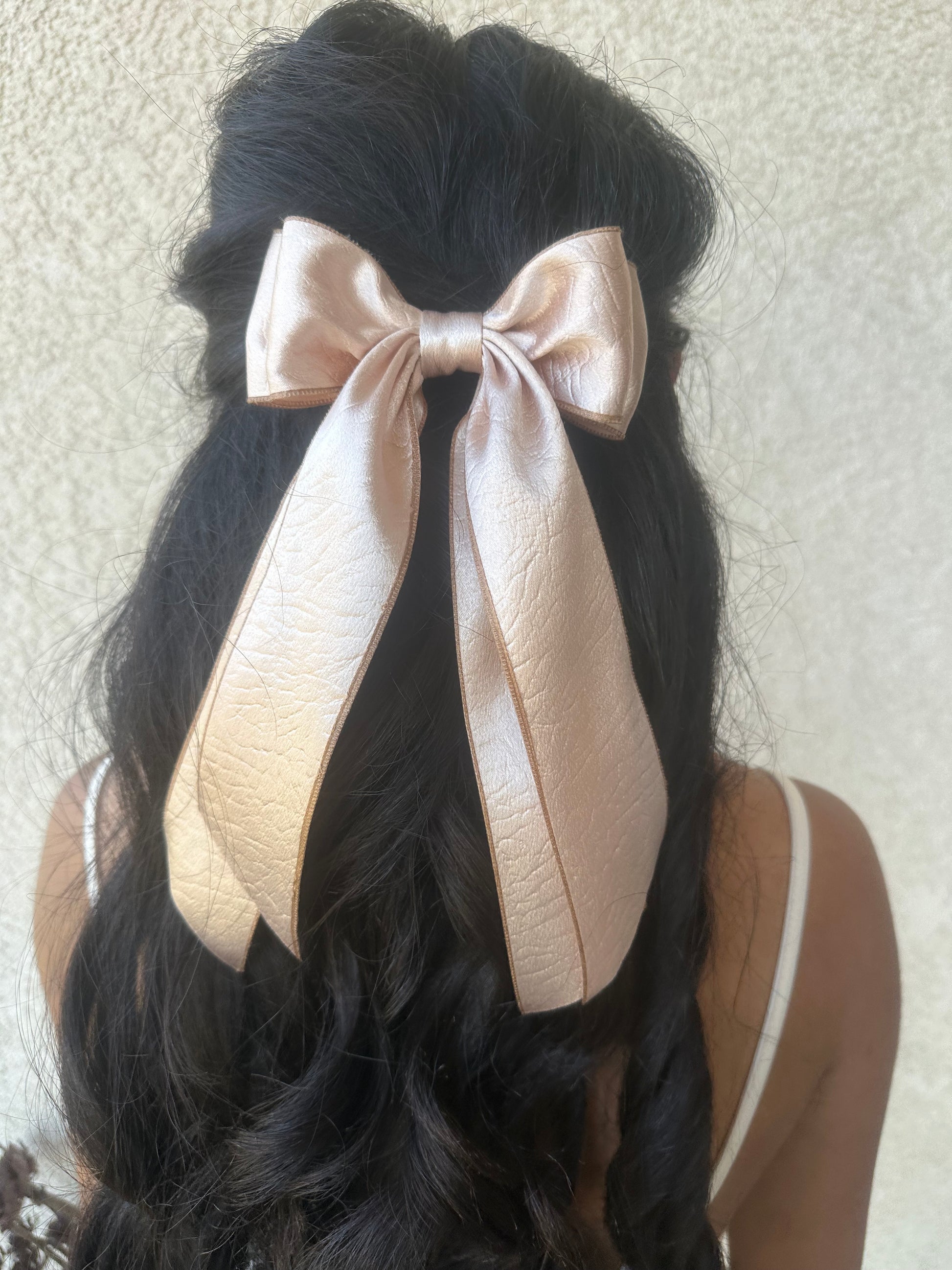 Indulge in luxury with our exquisite Handmade Ruffle Coquette Hair Bow. Crafted from delicate ruffle ribbon and fastened to our signature French barrette, this 5-inch wide, 8-inch long accessory exudes elegance and sophistication. Elevate your hair game with this exclusive hair clip.