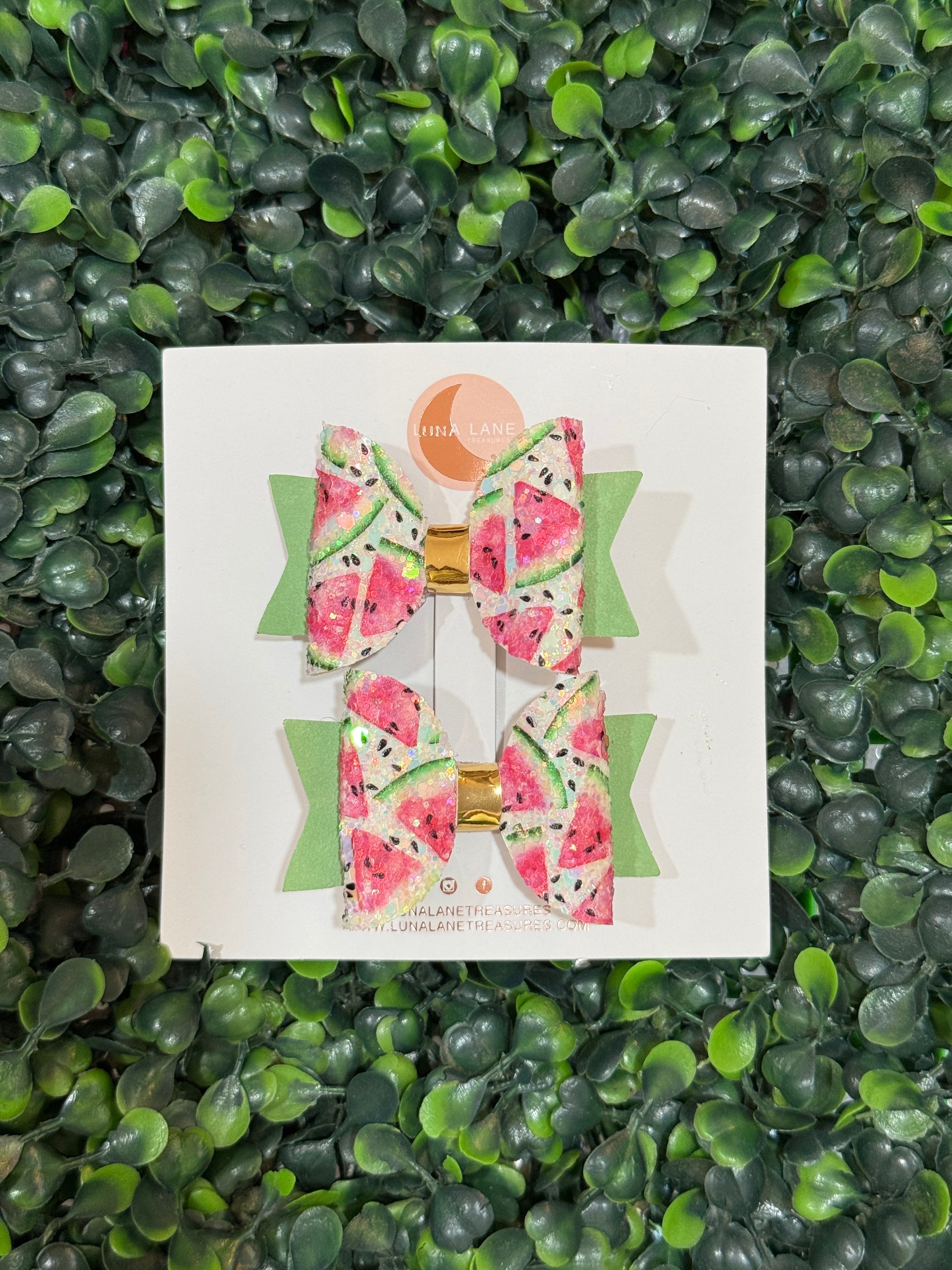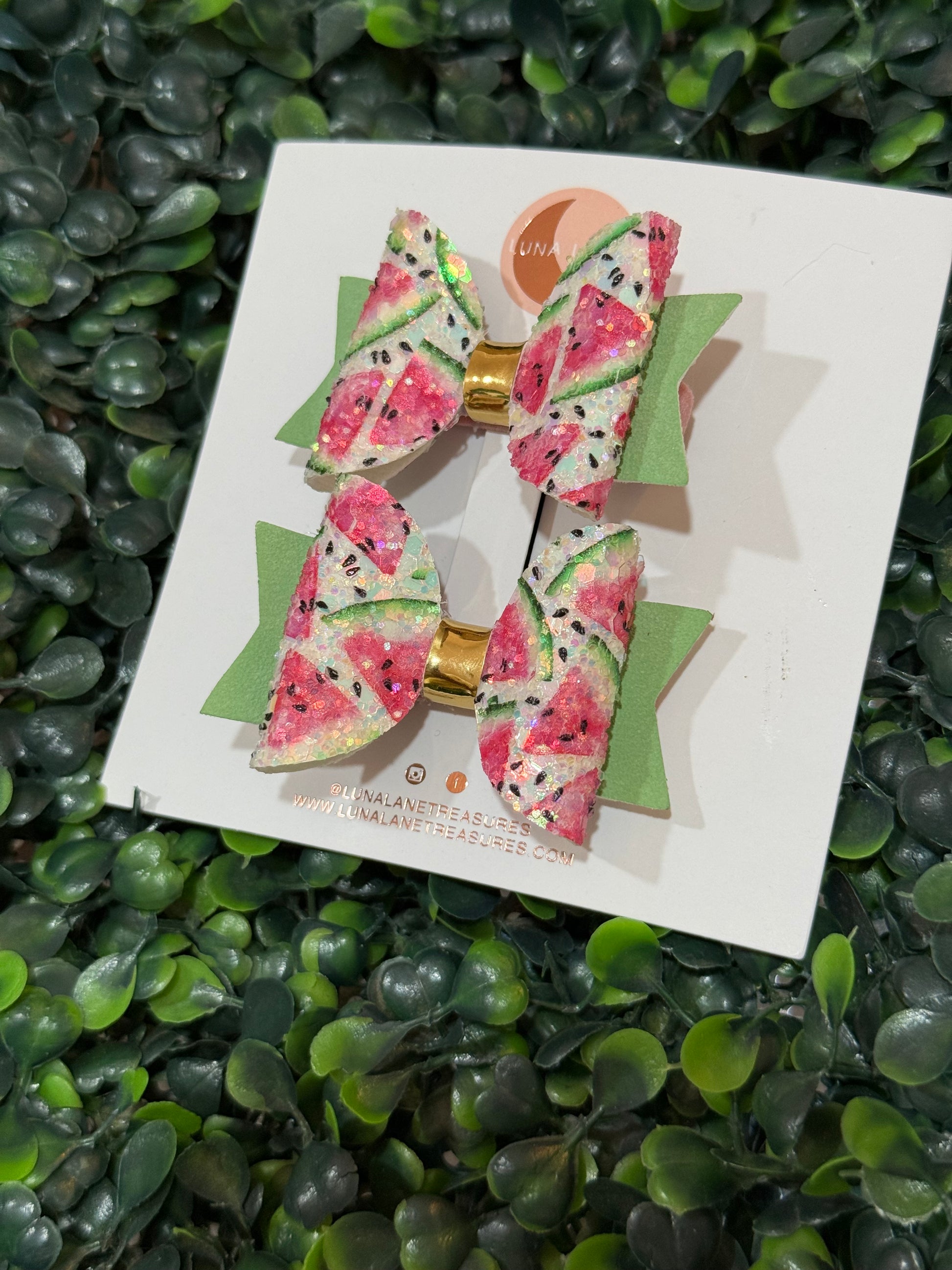 Elevate your fashion sense with our opulent pink and blue glitter Bow Pigtails. Each bow boasts a 2.5-inch size and is meticulously made with vegan glitter fabric, held in place by a 2-inch rose gold alligator clip wrapped in luscious velvet ribbon. Rest easy knowing your hair will stay in perfect shape all day long with our reliable pigtails.