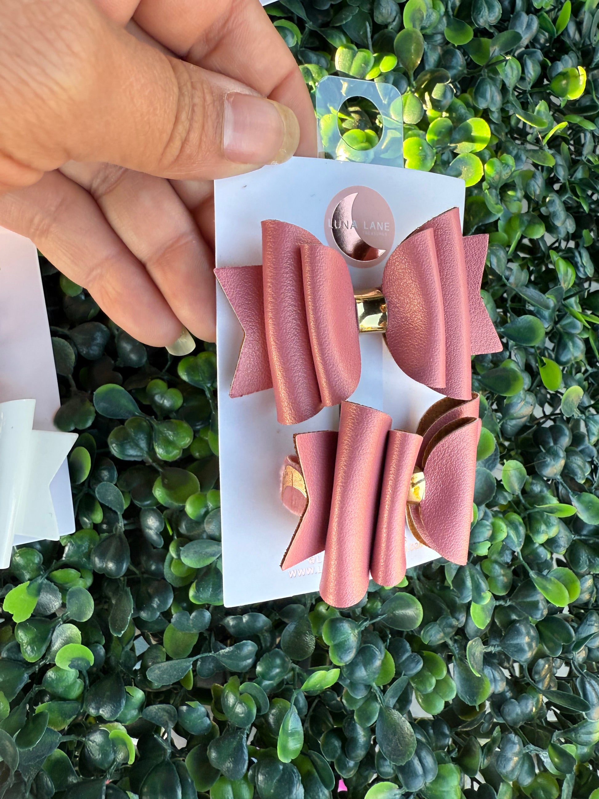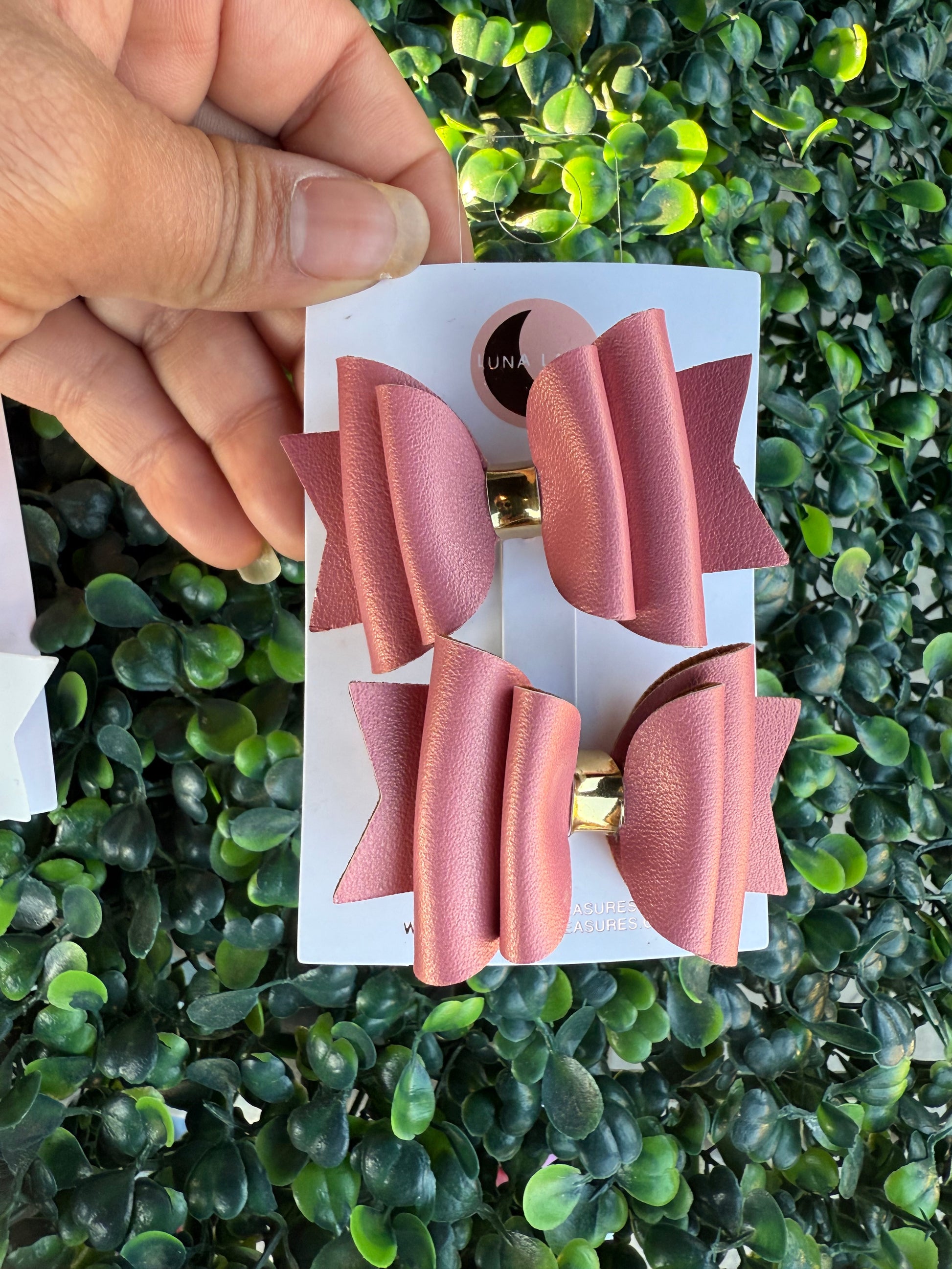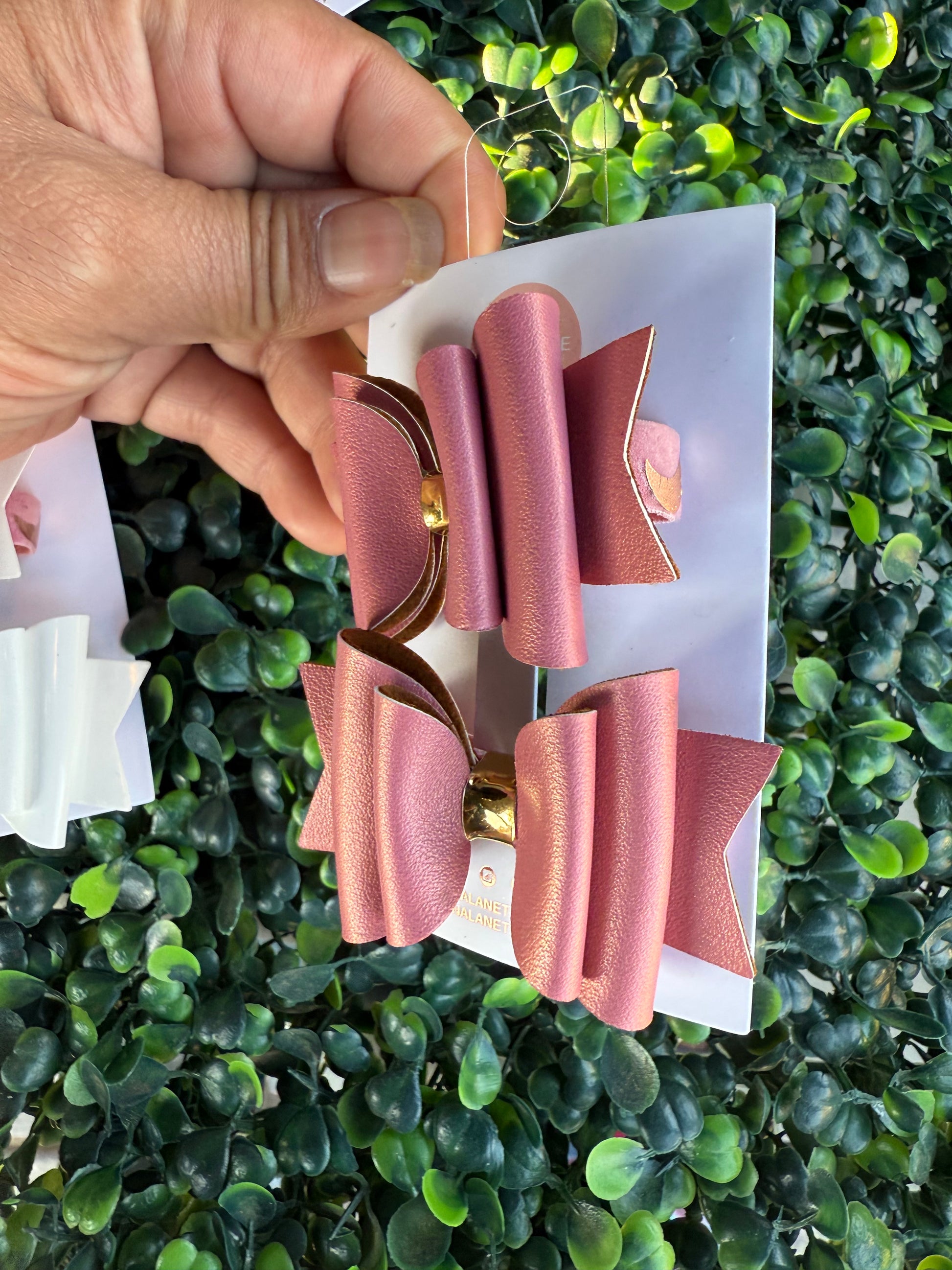 Mauve Metallic Leather Bow Pigtails