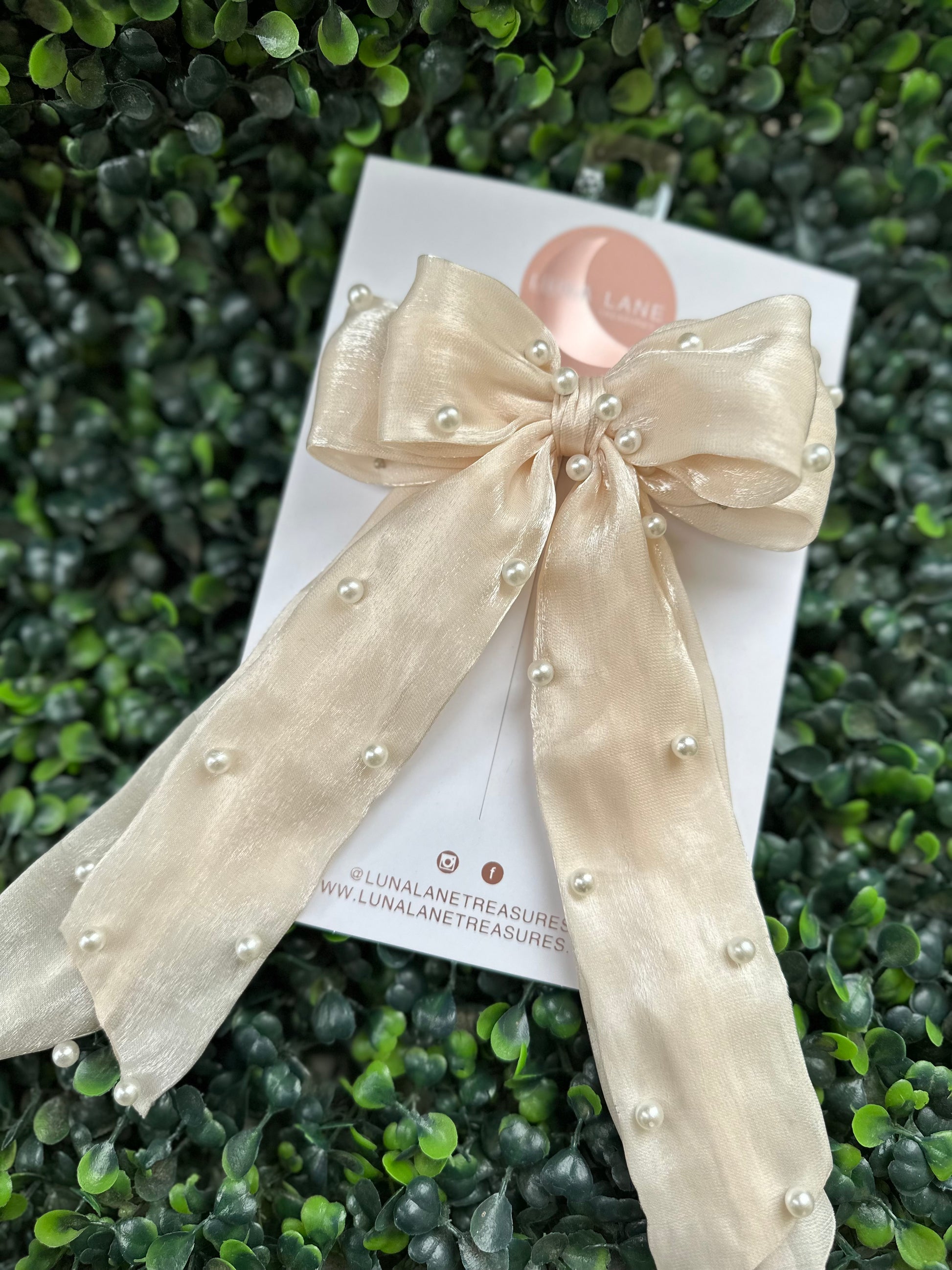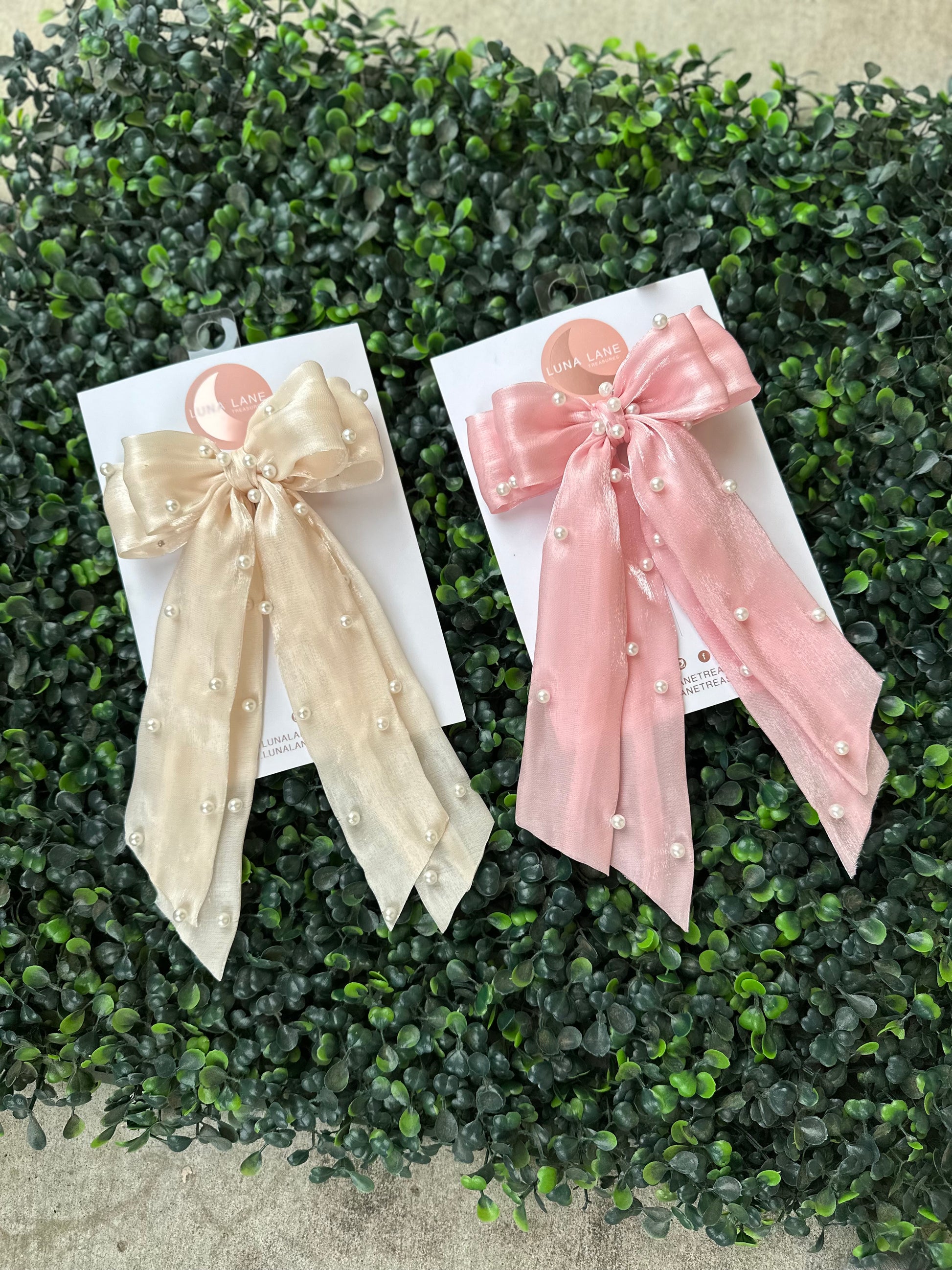 Cream Pearls Coquette Hair Bow