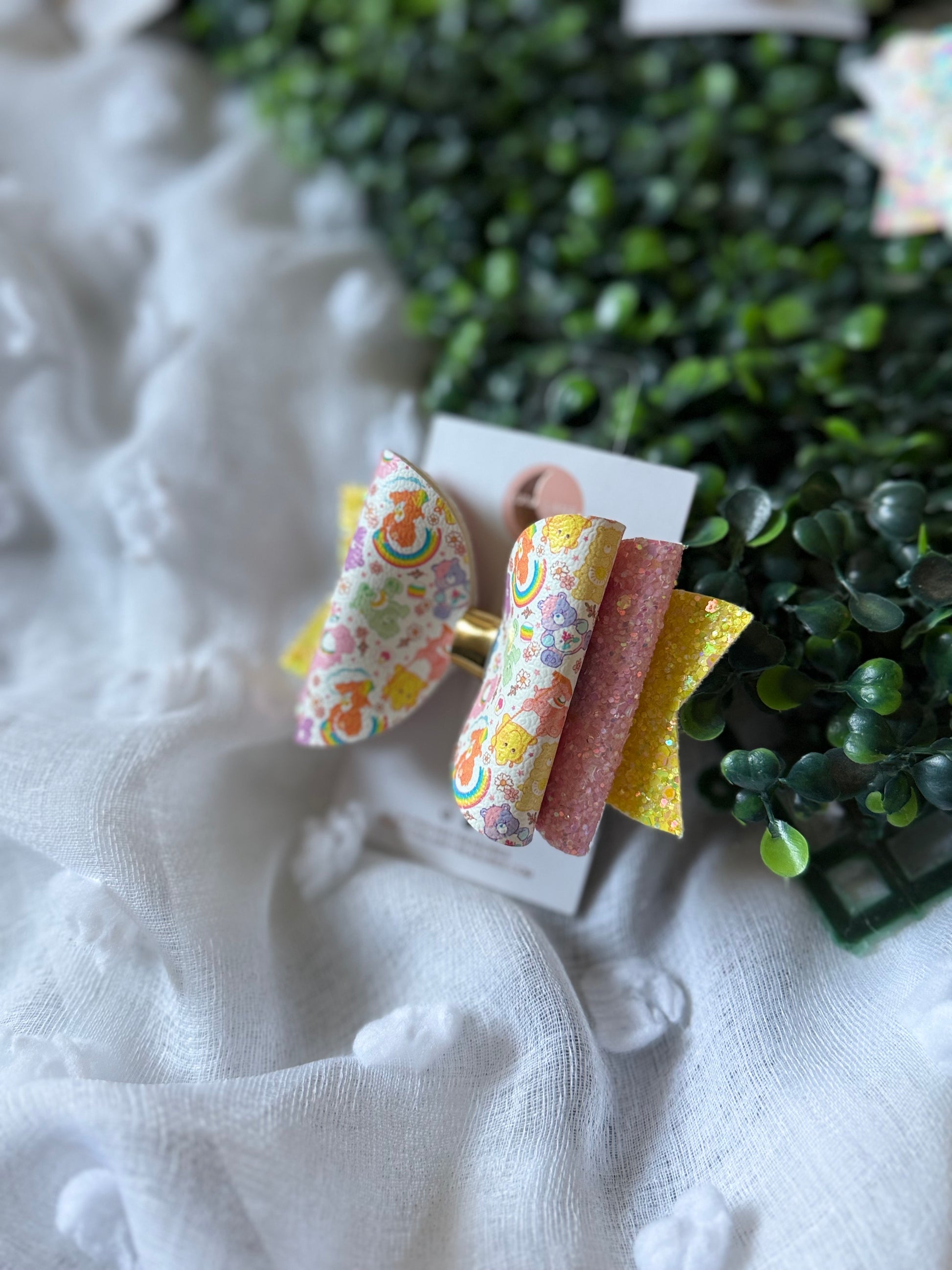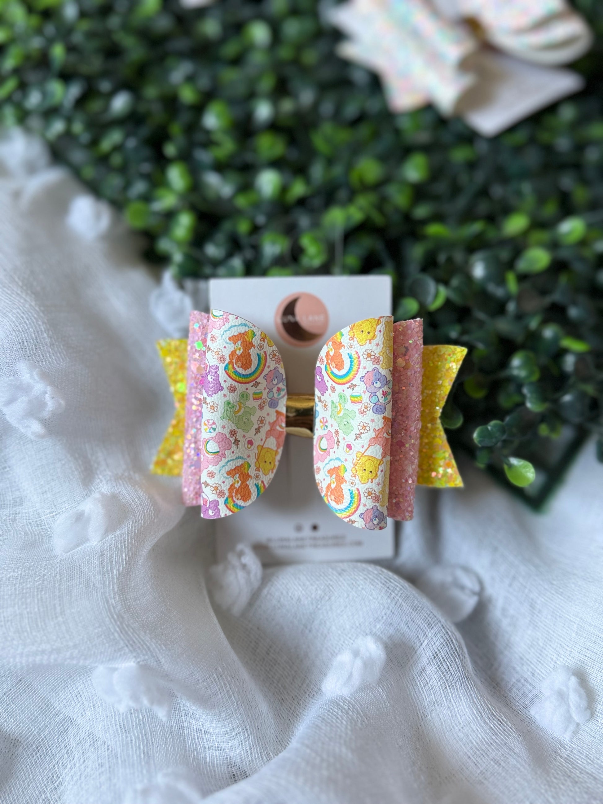 "Transform into a Care Bear cutie with this 4 in wide hair bow made from faux leather and featuring your favorite Care Bear prints. The alligator clip ensures a secure hold for all-day wear. Let your hair accessories do the talking and share the love with Care Bear Hair Bow.