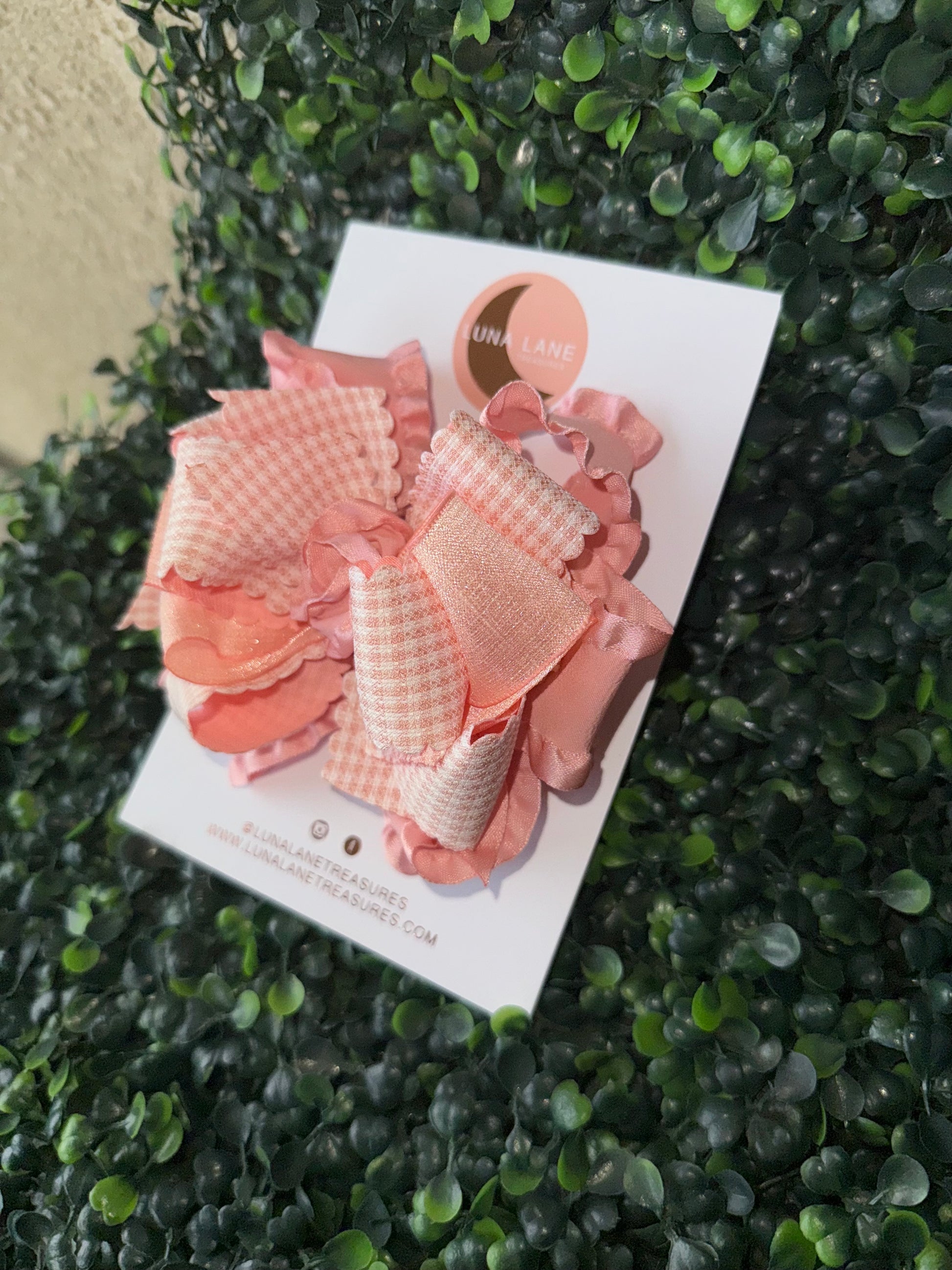 Dusty pink Handmade Gingham Ruffle Hair Bow