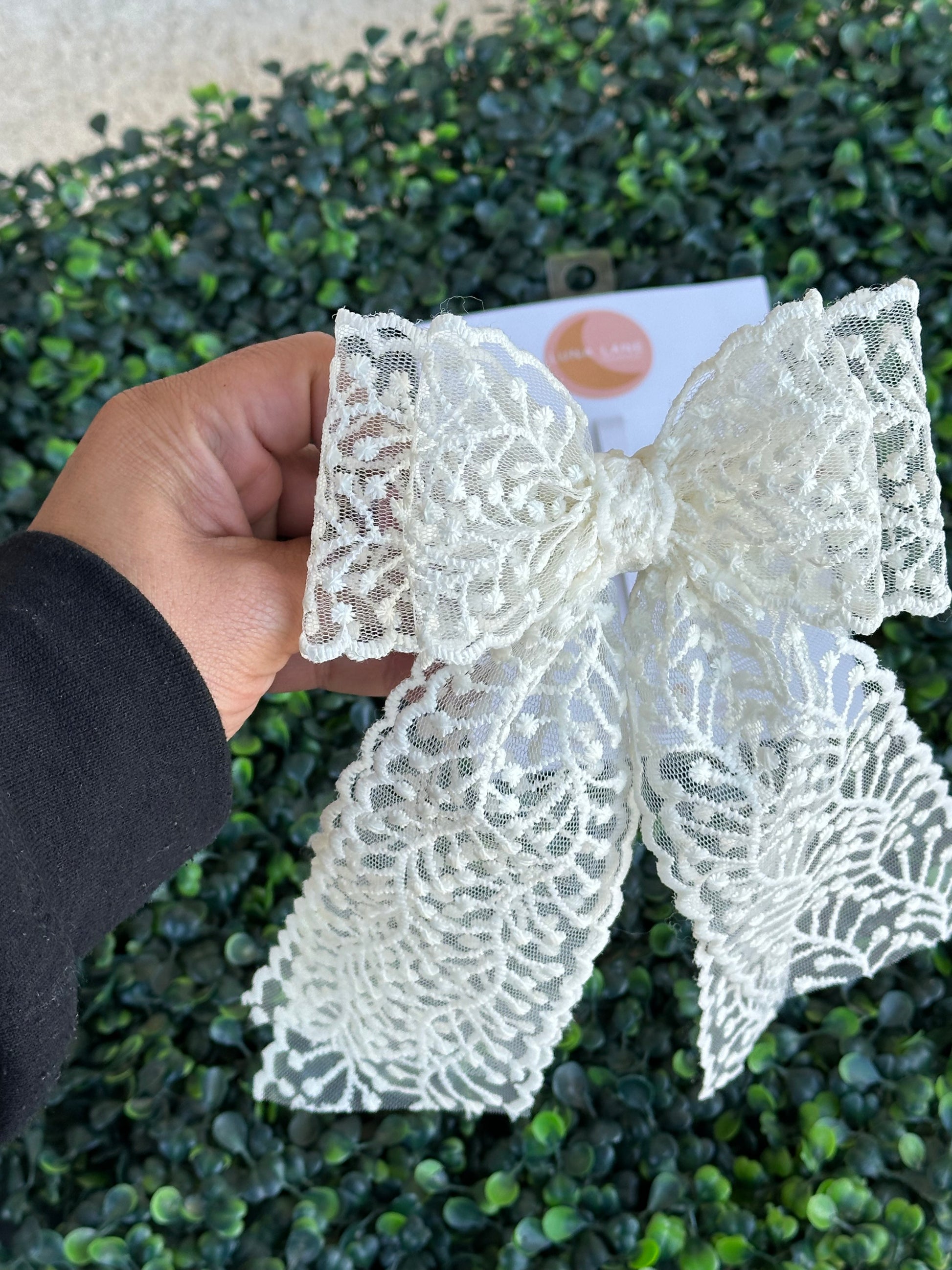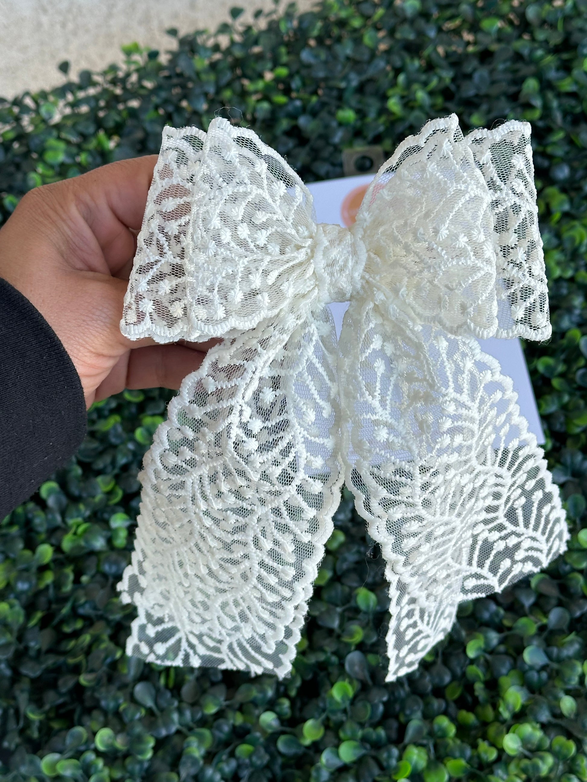 This playful Lace Vine Coquette Hair Bow is perfect for toddlers and adults alike! With a width of 5 inches and length of 8 inches, this hair bow features delicate lace trimming and a ribbon bow. Add a touch of whimsy to your hair with this versatile accessory.