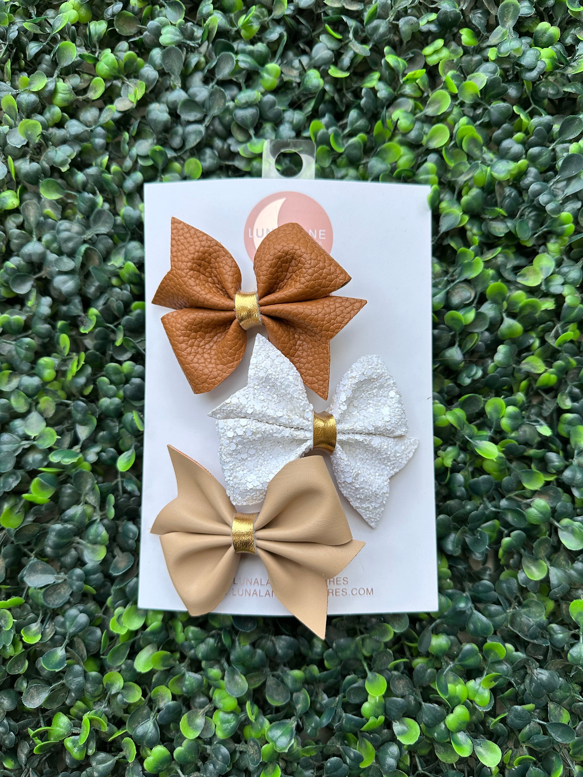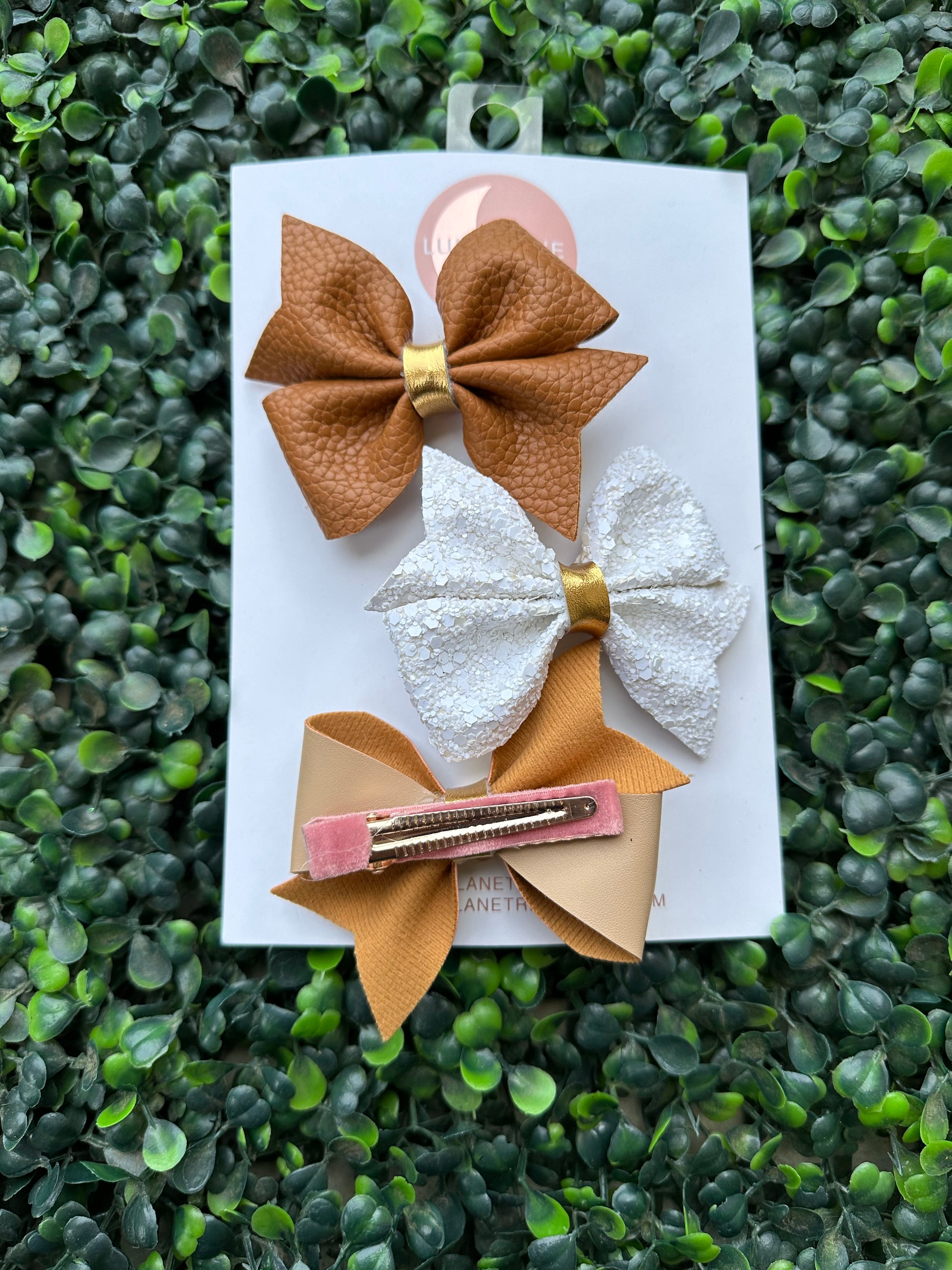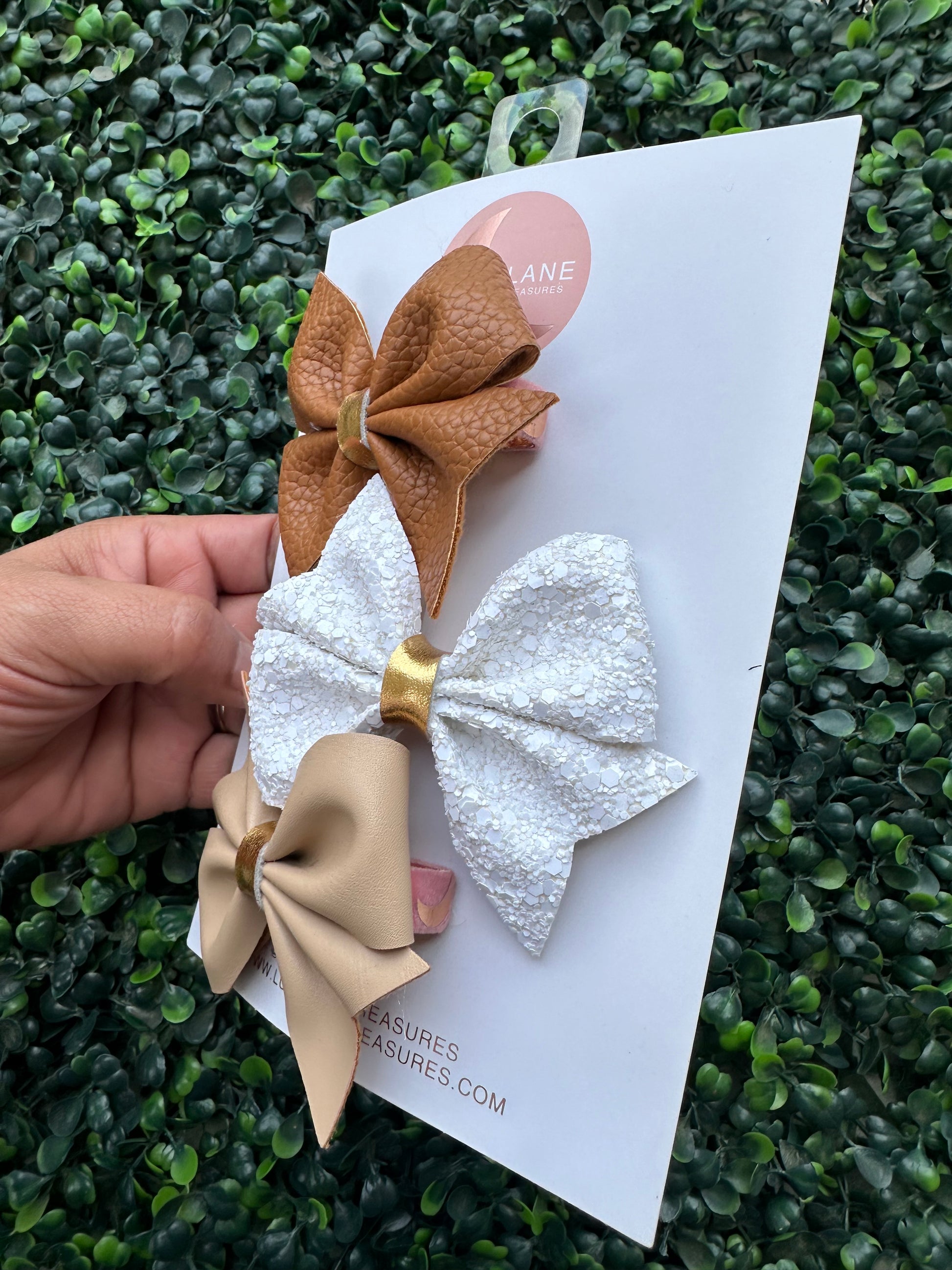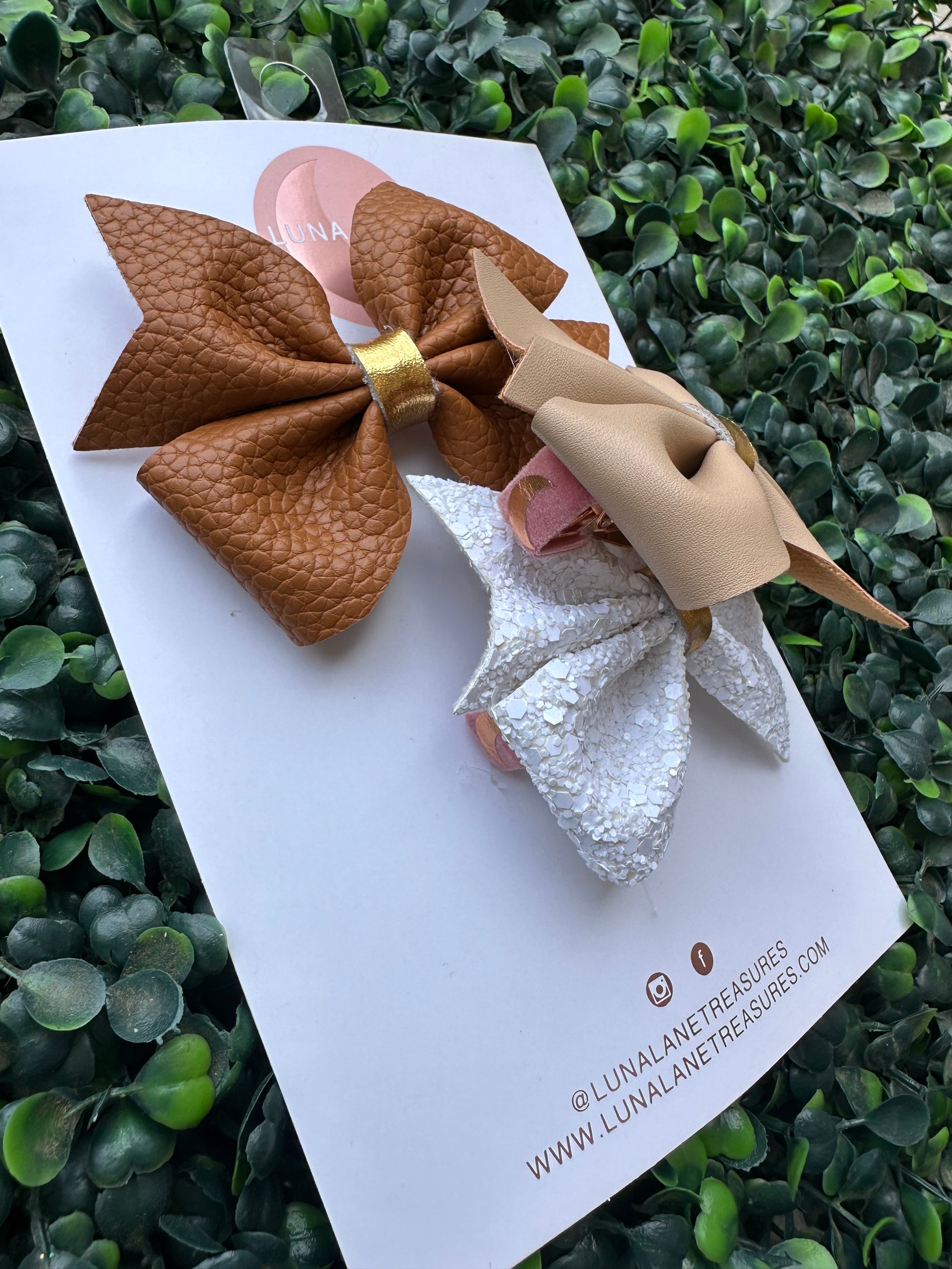 Take your hairstyle to the next level with our Lavender Iris Bow Pigtails. These pigtails feature 3-inch wide layered vegan leather bows, secured with 2-inch rose gold alligator clips covered in elegant velvet ribbon. Keep your hair looking flawless all day while showcasing your style and sophistication.