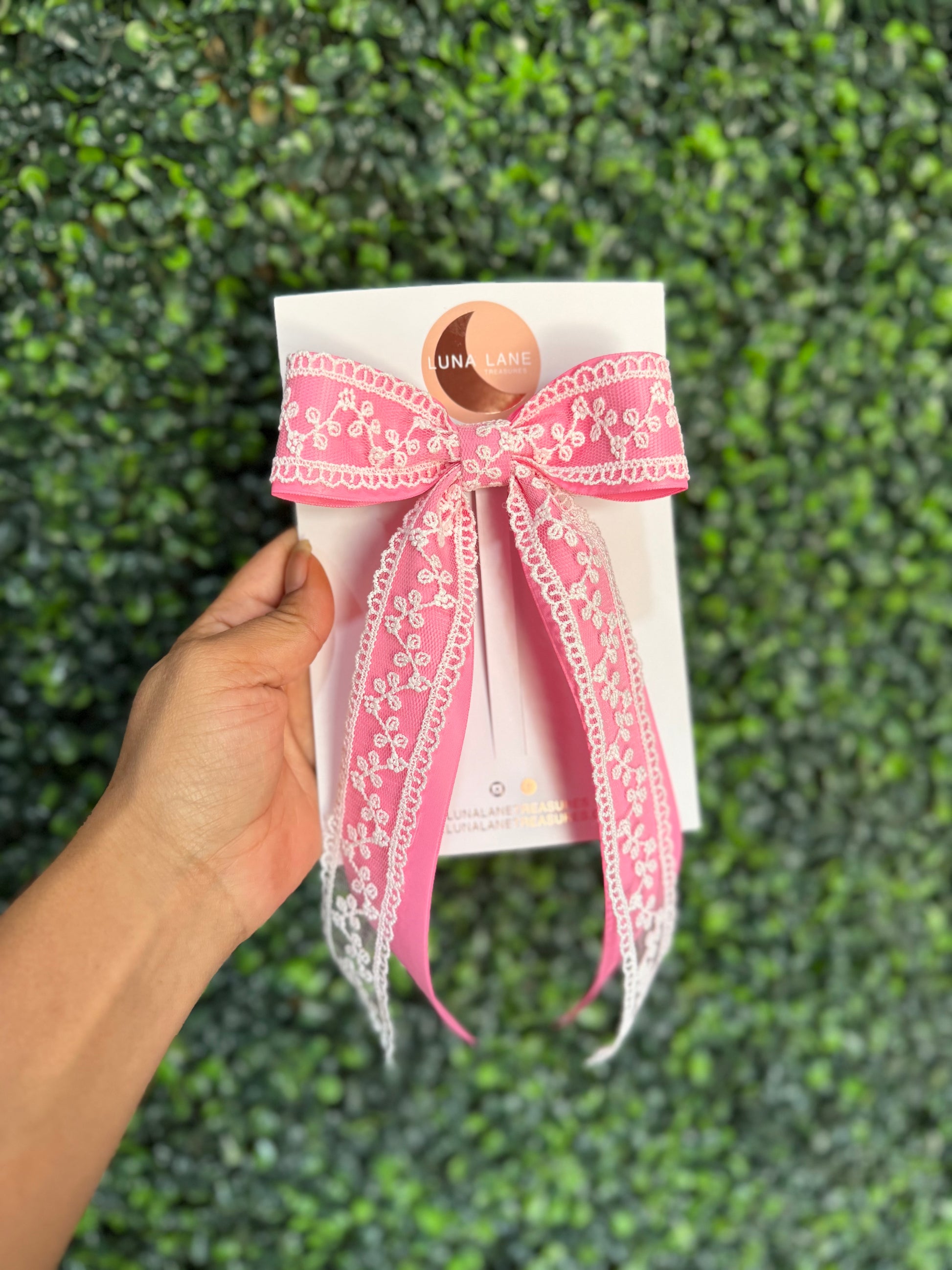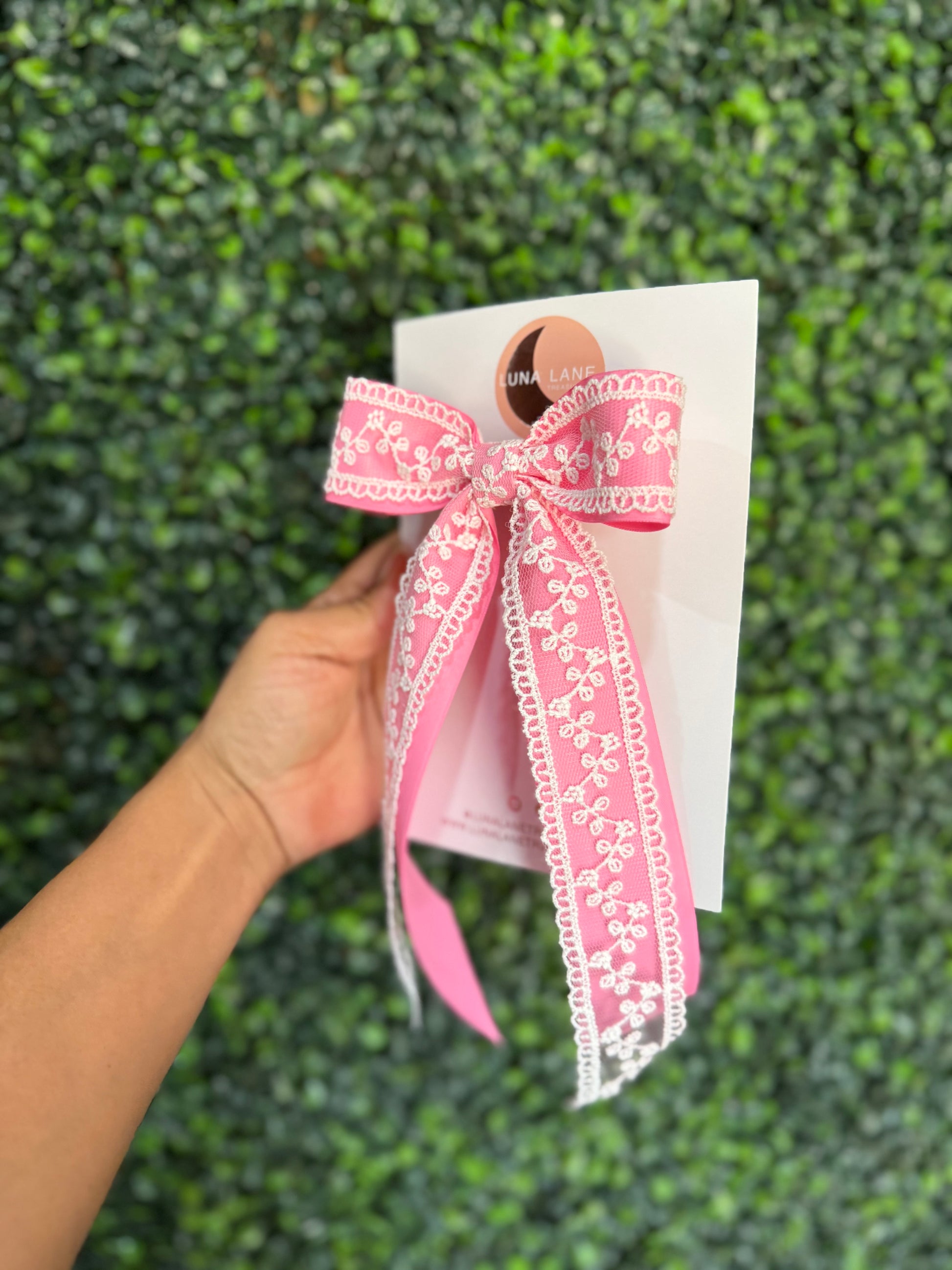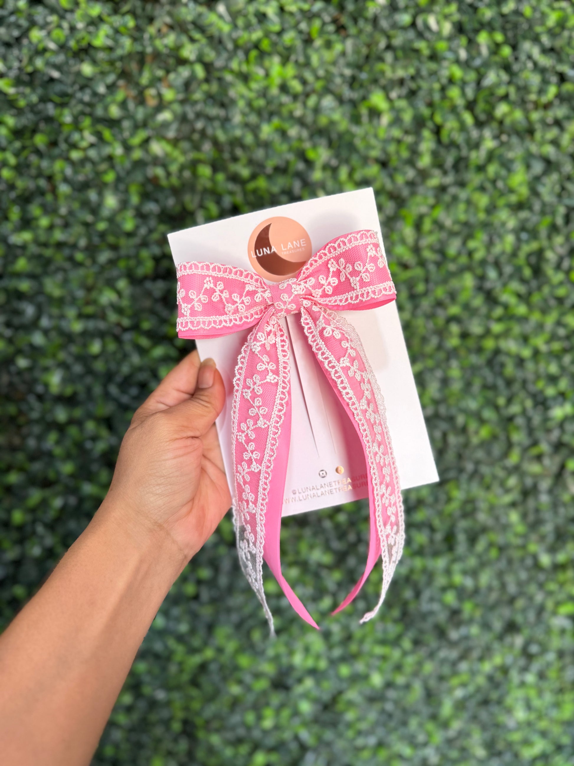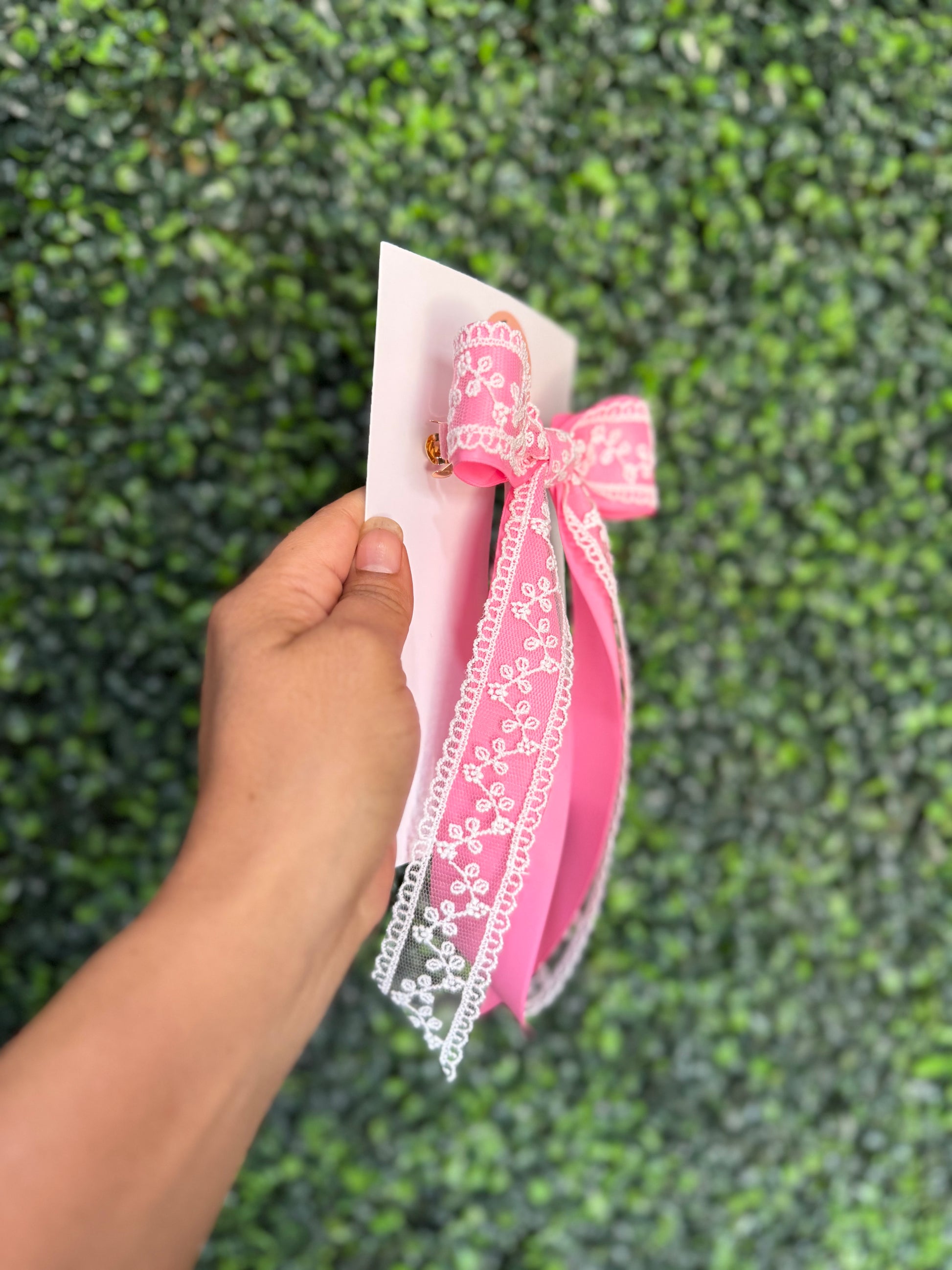 Pink Lace Ribbon Bow – Handmade Vintage-Inspired Hair Accessory