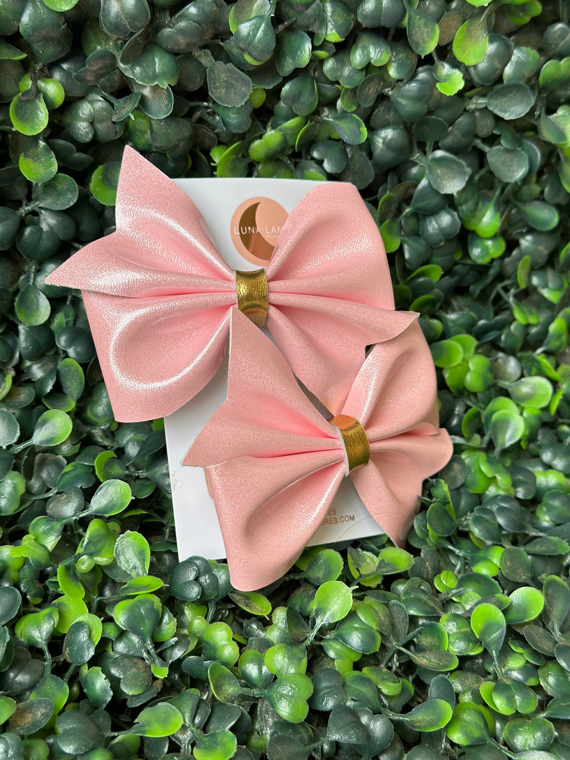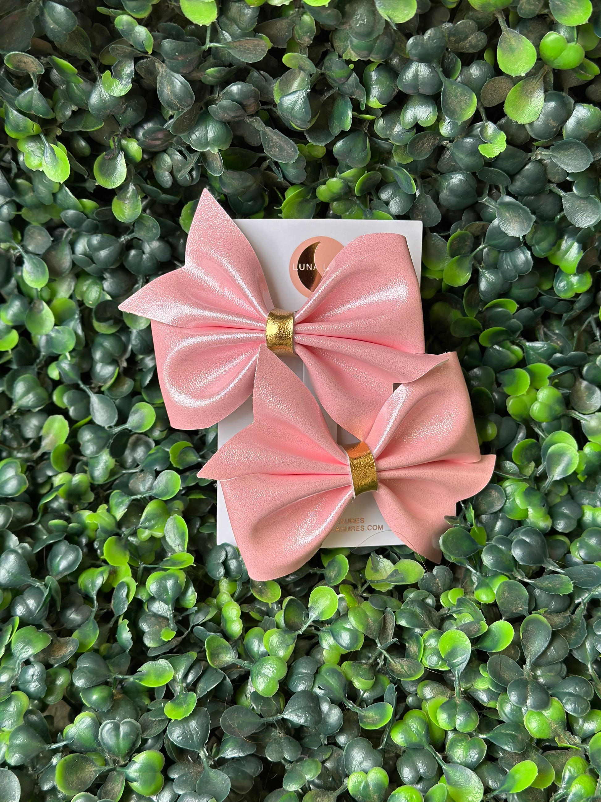 Take your hairstyle to the next level with our Lavender Iris Bow Pigtails. These pigtails feature 3-inch wide layered vegan leather bows, secured with 2-inch rose gold alligator clips covered in elegant velvet ribbon. Keep your hair looking flawless all day while showcasing your style and sophistication.