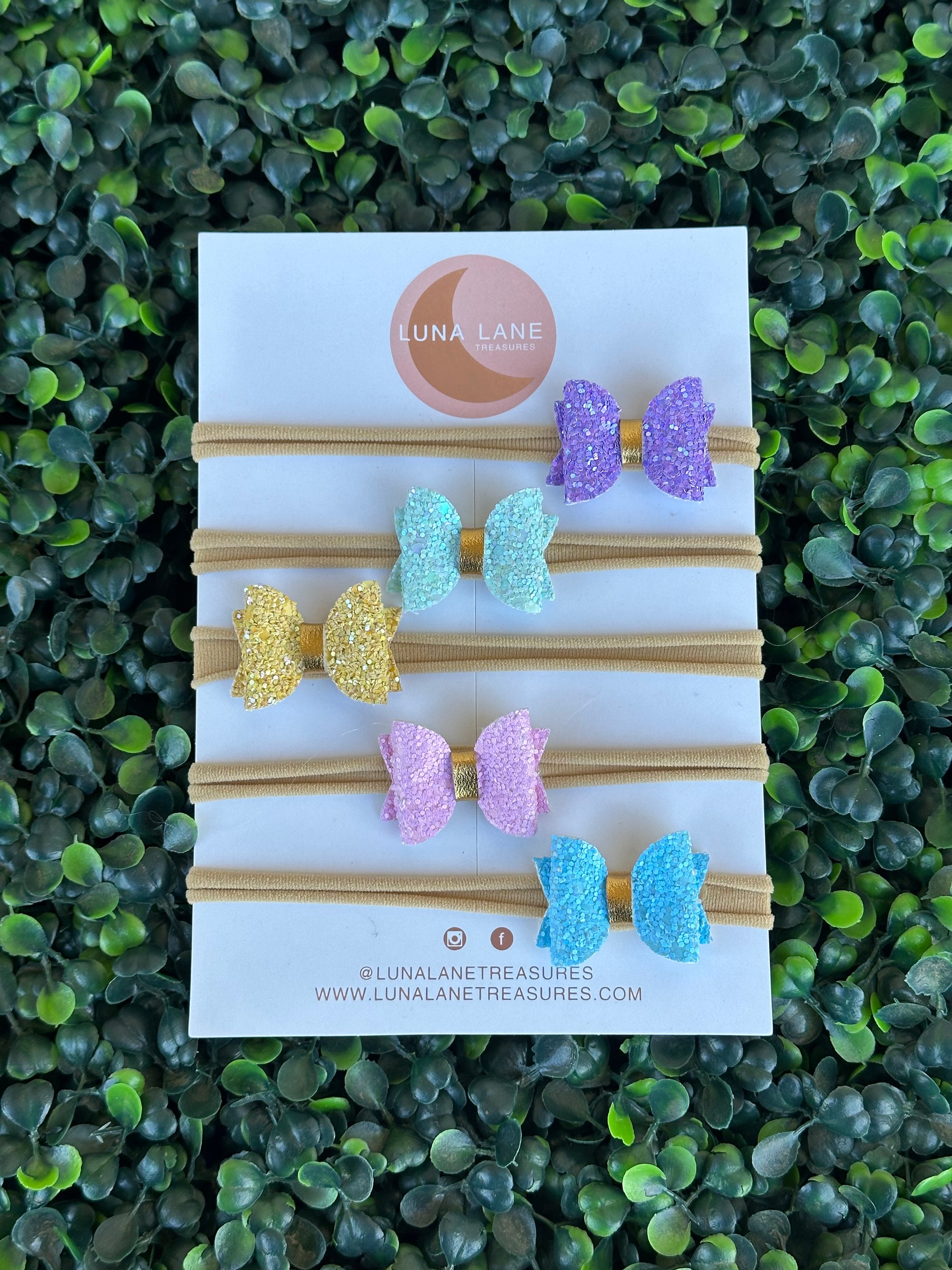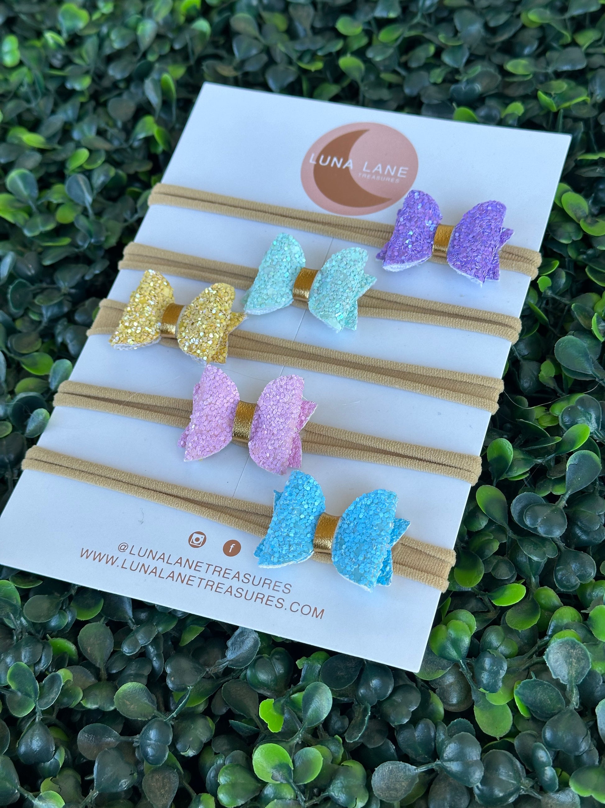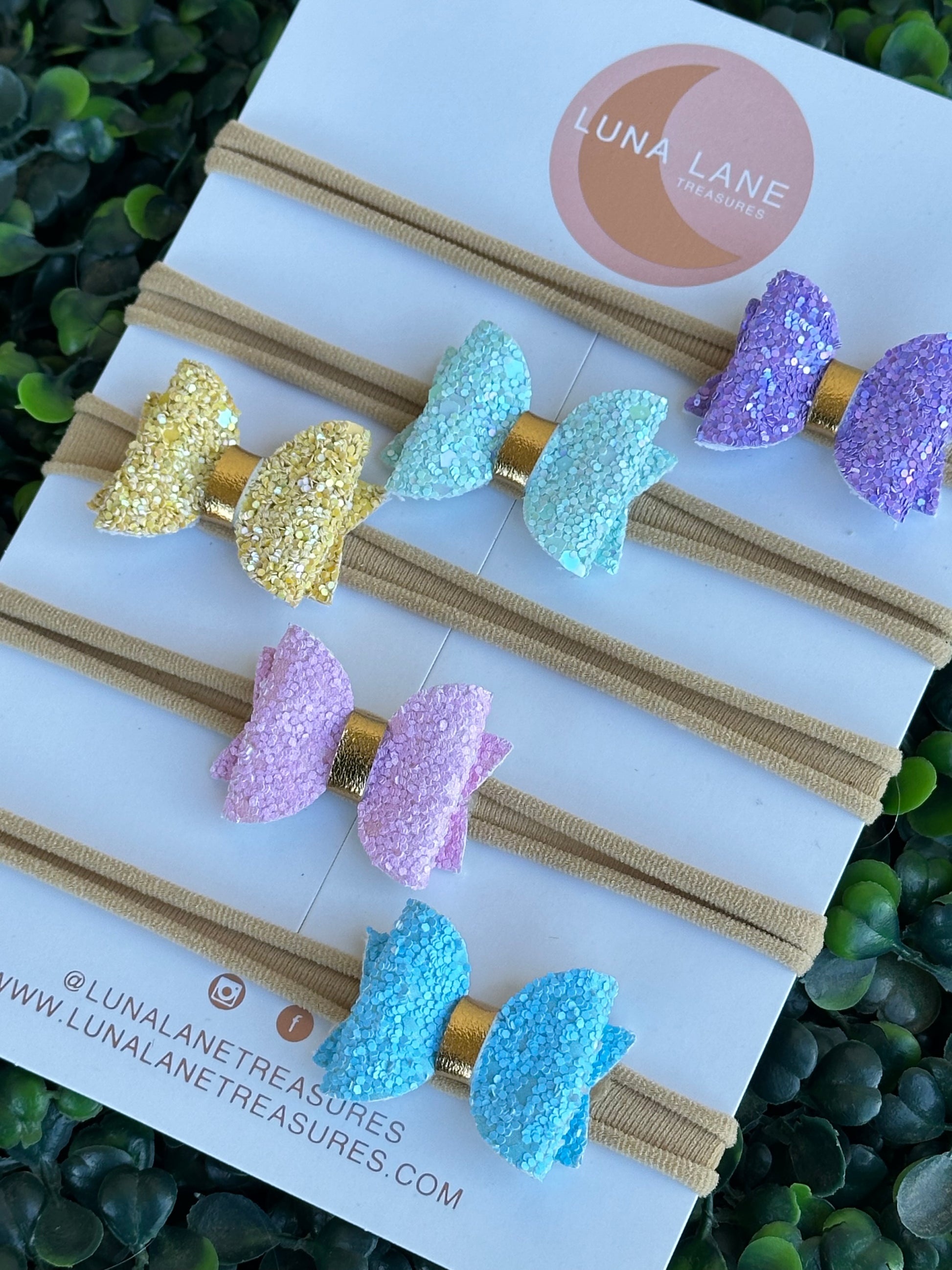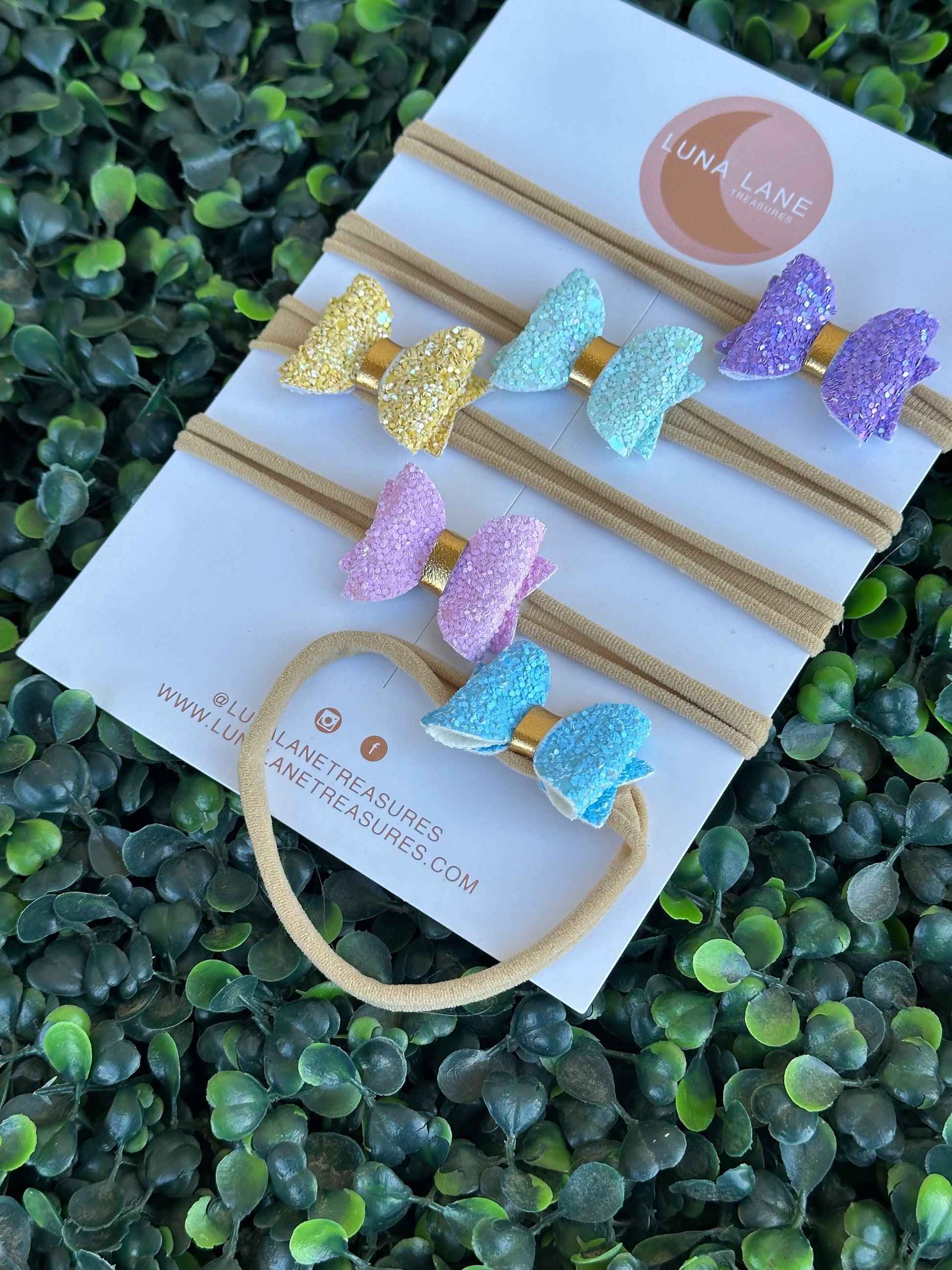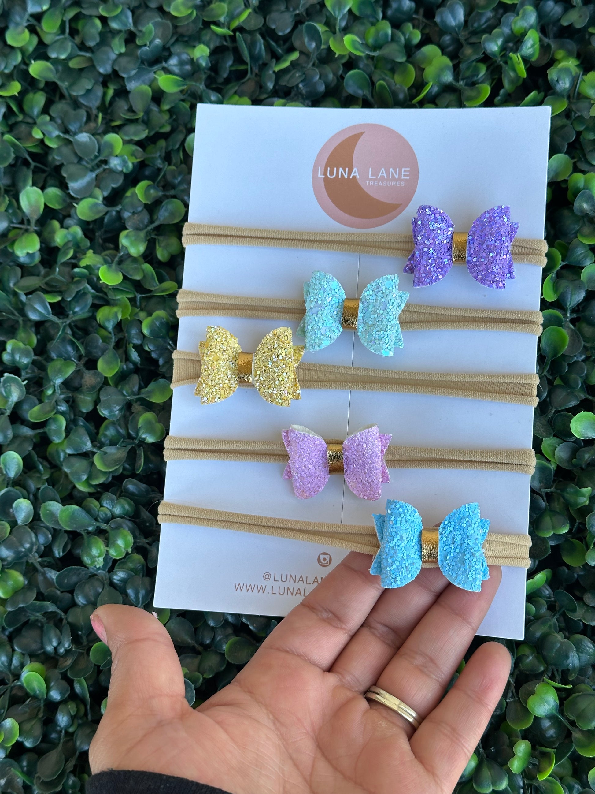 Introducing our Luna Lane Treasures Handmade Hair Clips or Nylon Headband Set! Each set includes five mini, 2.5 inches wide, exquisitely crafted hair adornments that promise not just utility but style. Each piece is a work of art, made with precision and care, ensuring they are as durable as they are beautiful: